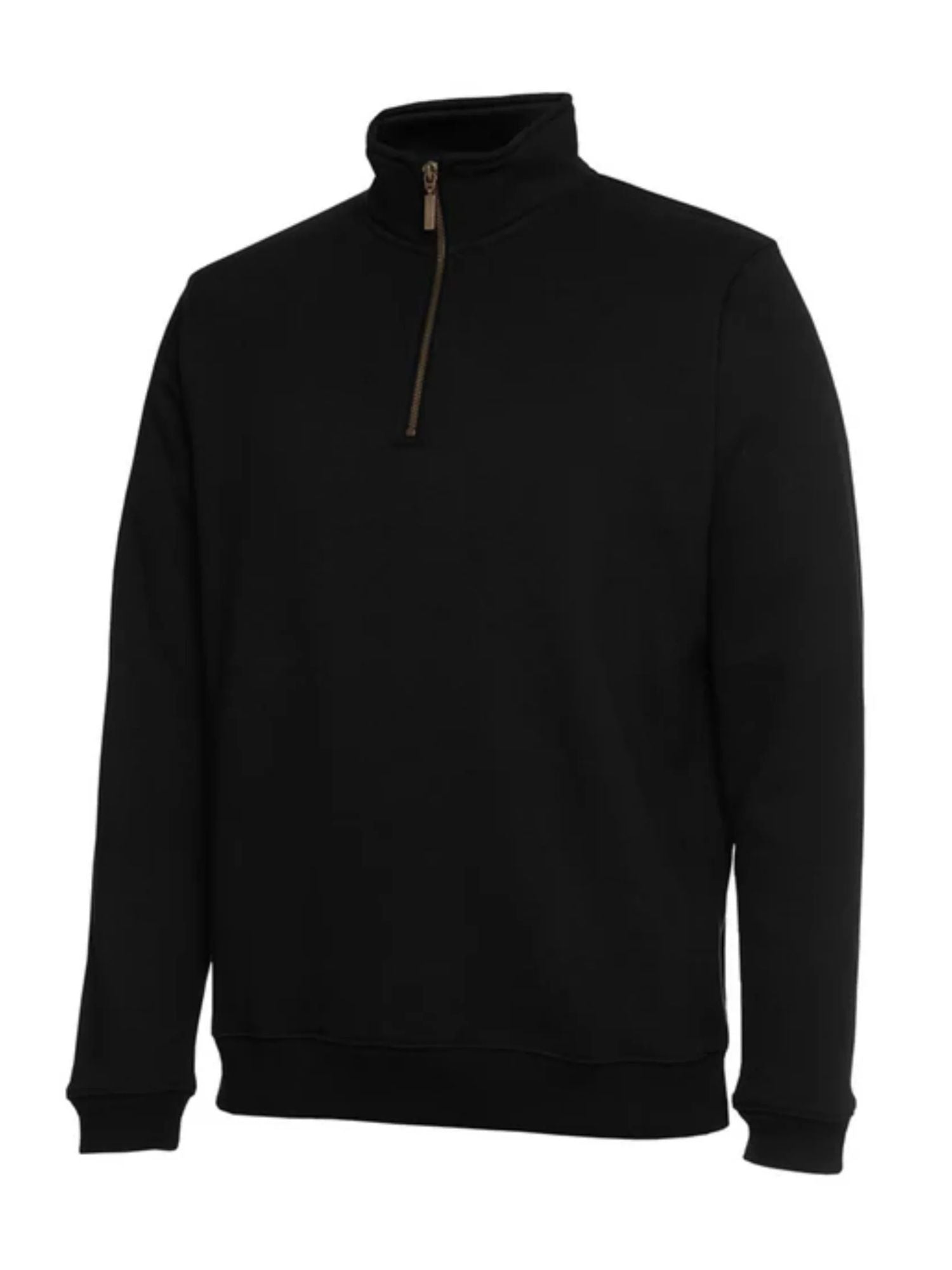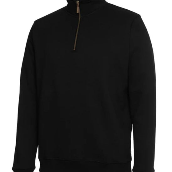 Half-zip sweat in 310 gsm fabric. Antique brass zip front placket opening. 2x2 rib sleeve and hem basque. Classic fit. Solid colours are 80% cotton/20% polyester.