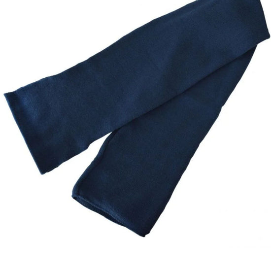 Acrylic knit scarf. 110cm x 15cm. 90 gsm. Double layer with a tunnel at one end which enables the scarf to be pulled through to create a neck wrap.