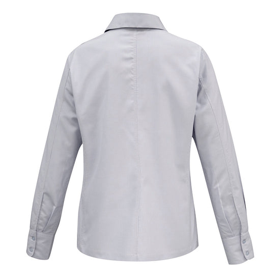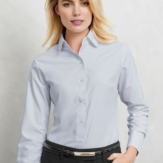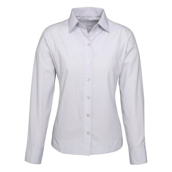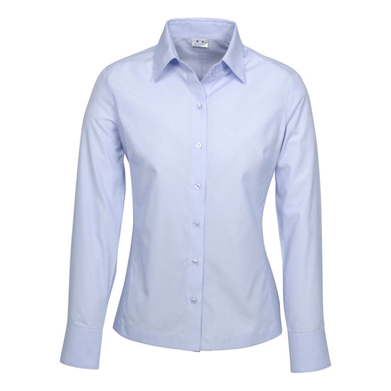 Ladies tailored fit blouse with side panels for better fit. Long sleeves with two button cuff and two button collar detail. Polycotton easycare fabric.