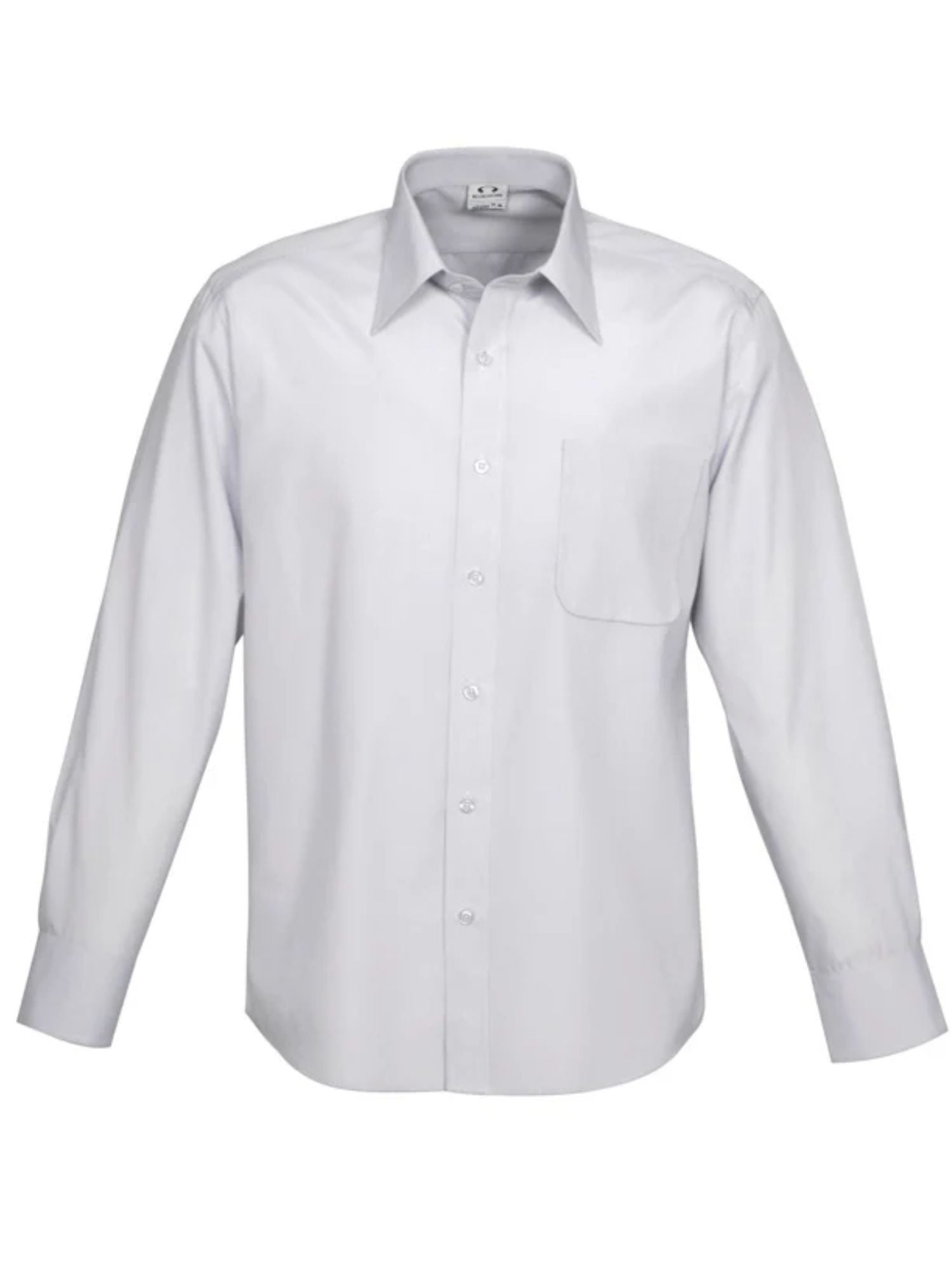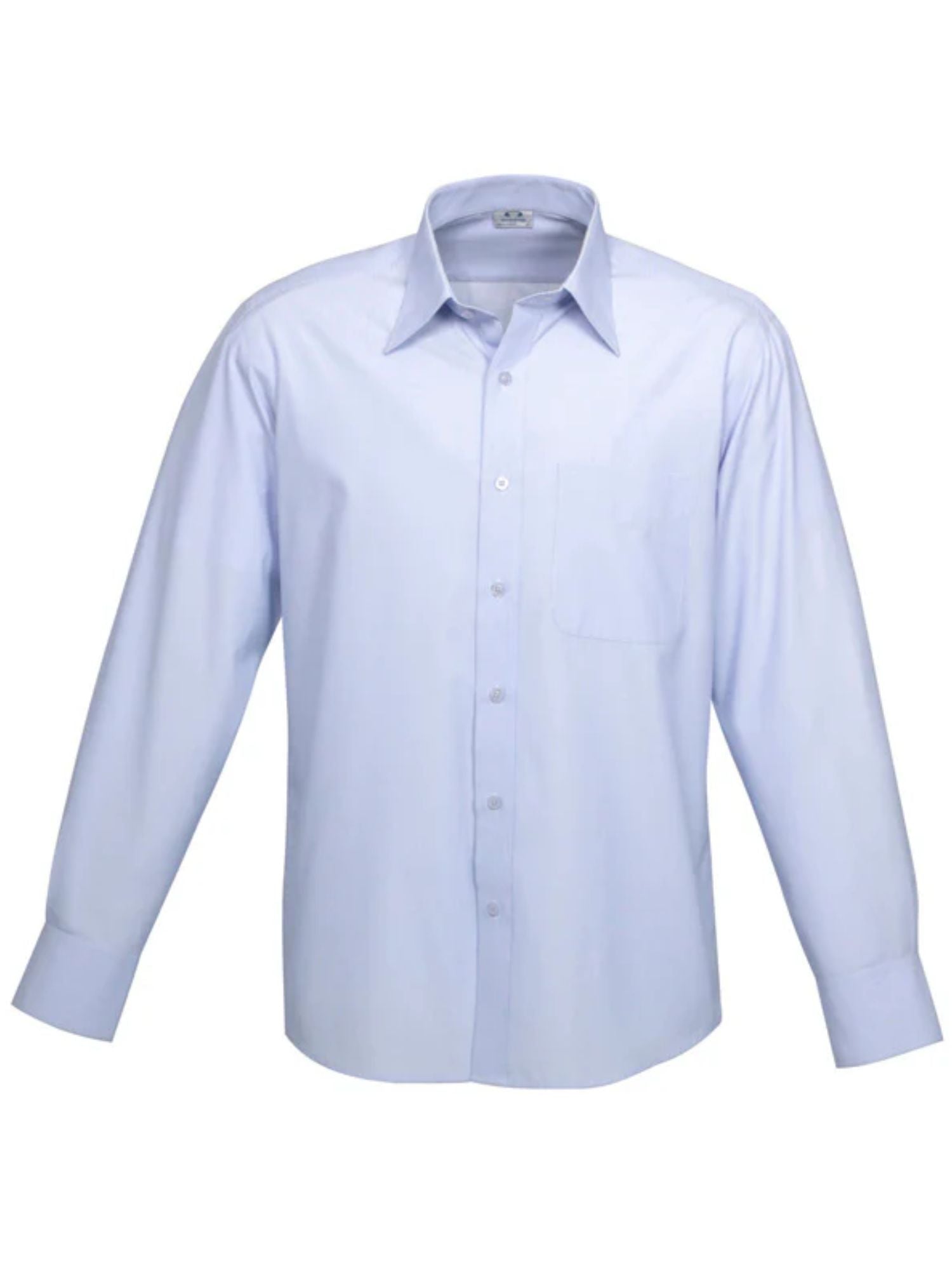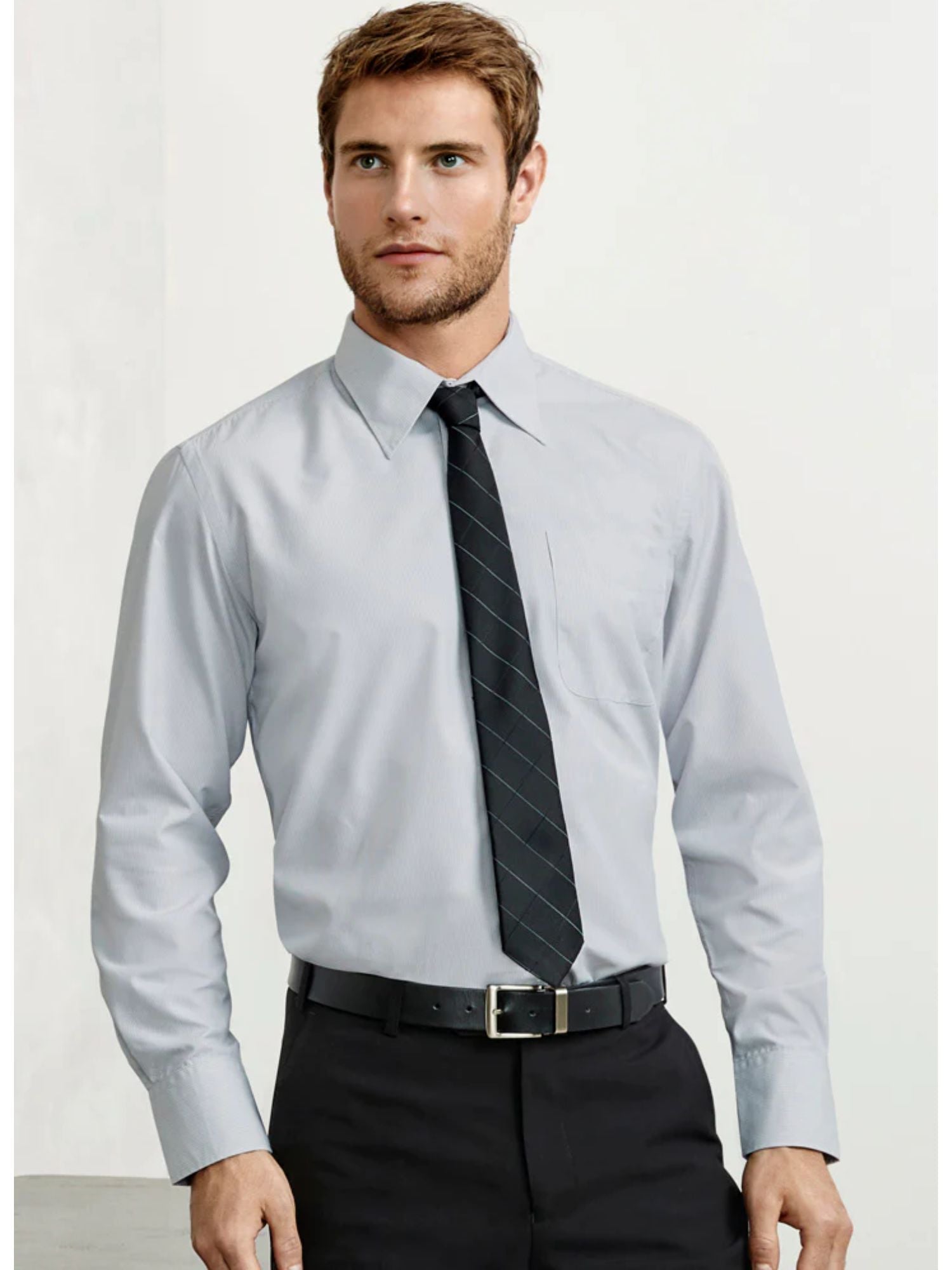 Mens modern fit shirt with front chest pocket. Long sleeves with two button adjustable cuffs. Polycotton easycare fabric.