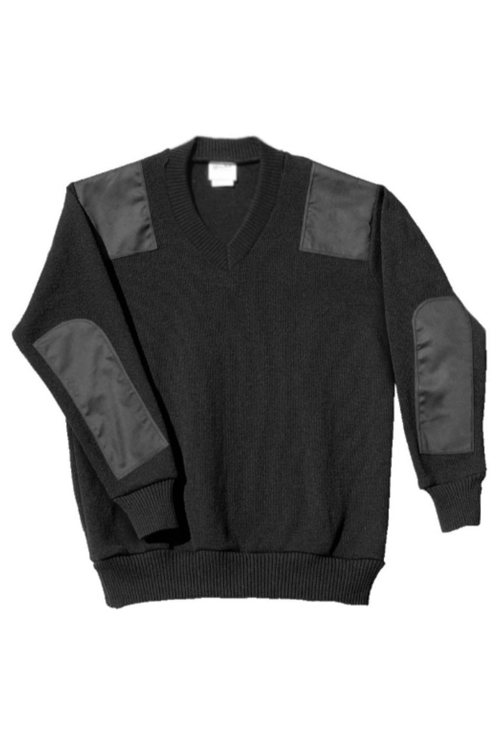 Description: Military style elbow & shoulder patch pullover with V Neck.