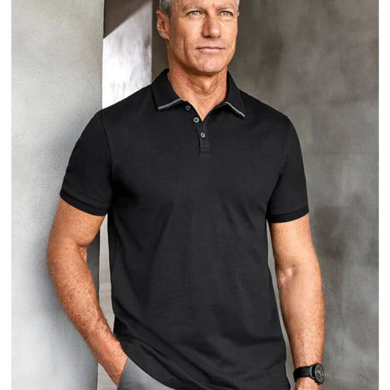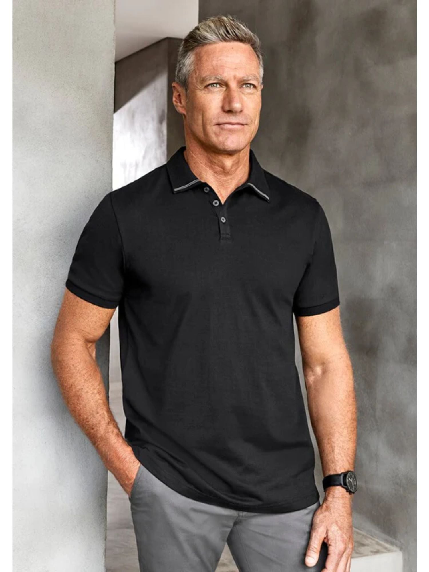 Soft touch Cotton fabric is natural and breathableElegant stripe collar detail and pearlized buttonsFinished with a knitted sleeve cuffLonger length with side splitsMens style includes loose pocket