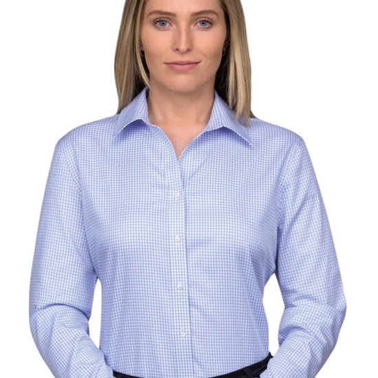 The Barkers Hudson women's shirt is a premium quality 100% cotton yarn dyed gingham check shirt. It has a luxury liquid ammonia finish for additional strength and luster. Also featuring a V style open neck with fashion collar and a contoured hemline. This tapered fit shirt comes in a men's style as well, code BHC.