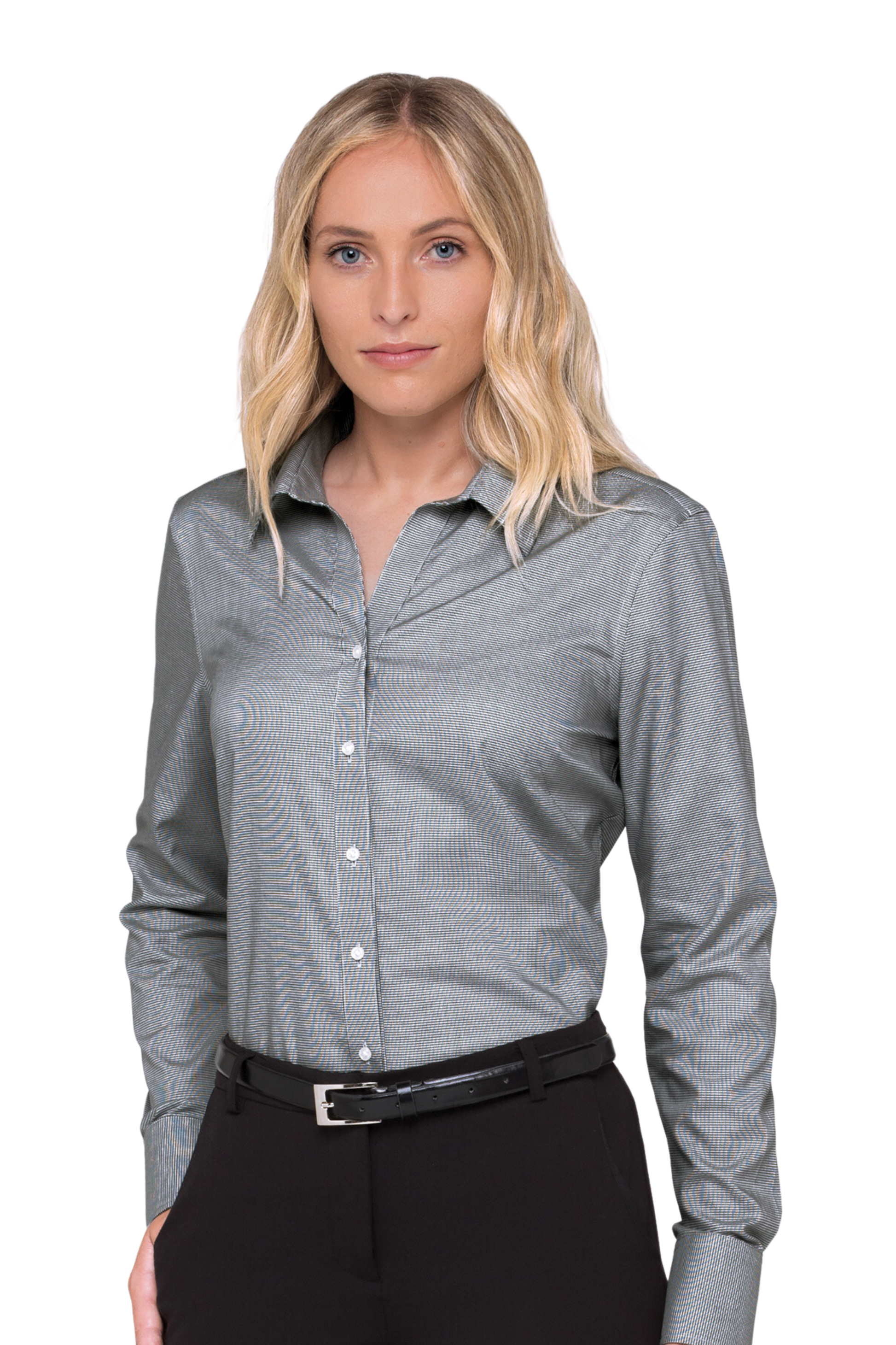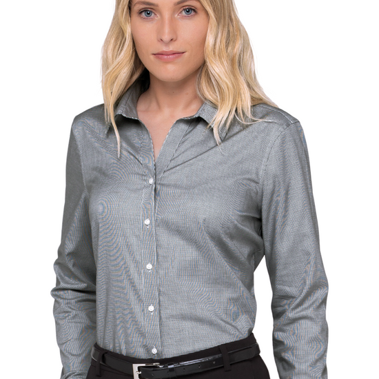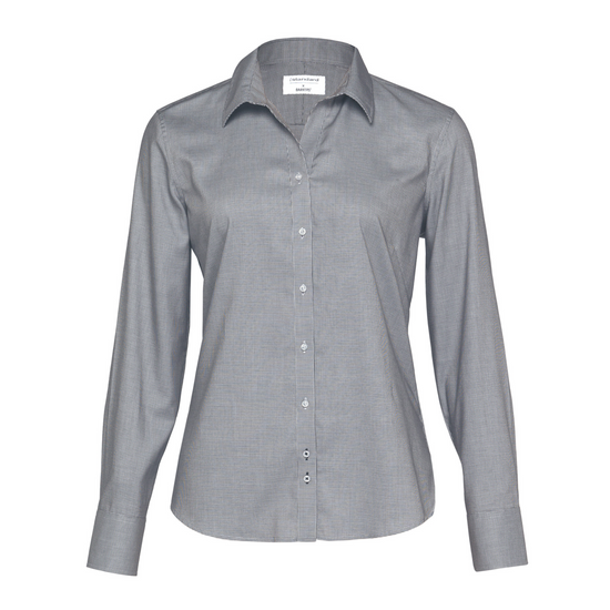The Norfolk women's fit tapered Shirt has a luxury liquid Ammonia finish for additional strength and luster along with a contoured hemline. This shirt has V style open neck fashion collar contrast stich detailing on selected buttons. The fabric is non-wrinkle resistant and 100% cotton for comfort, breathability and easy care.