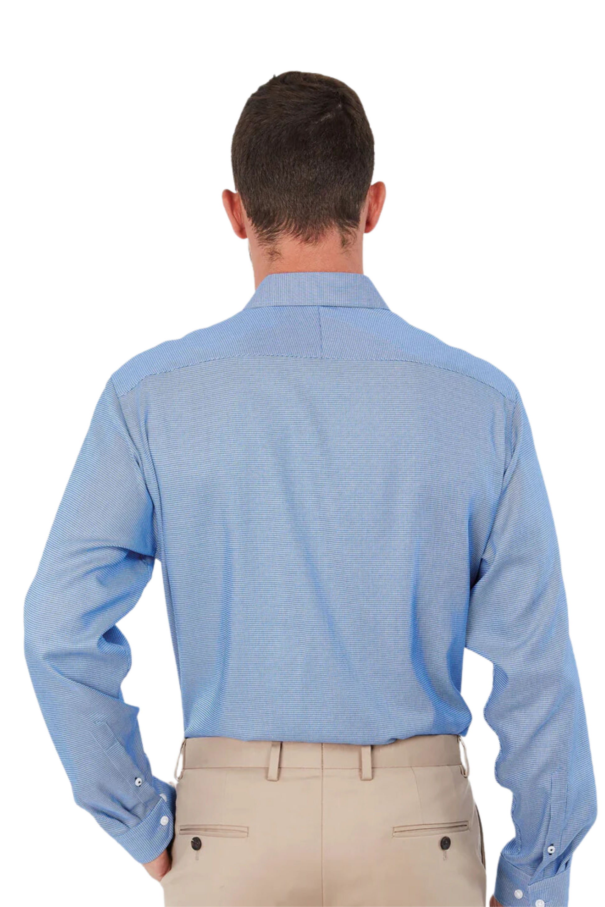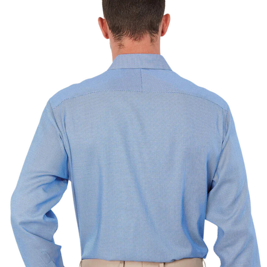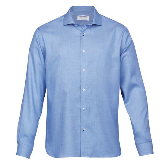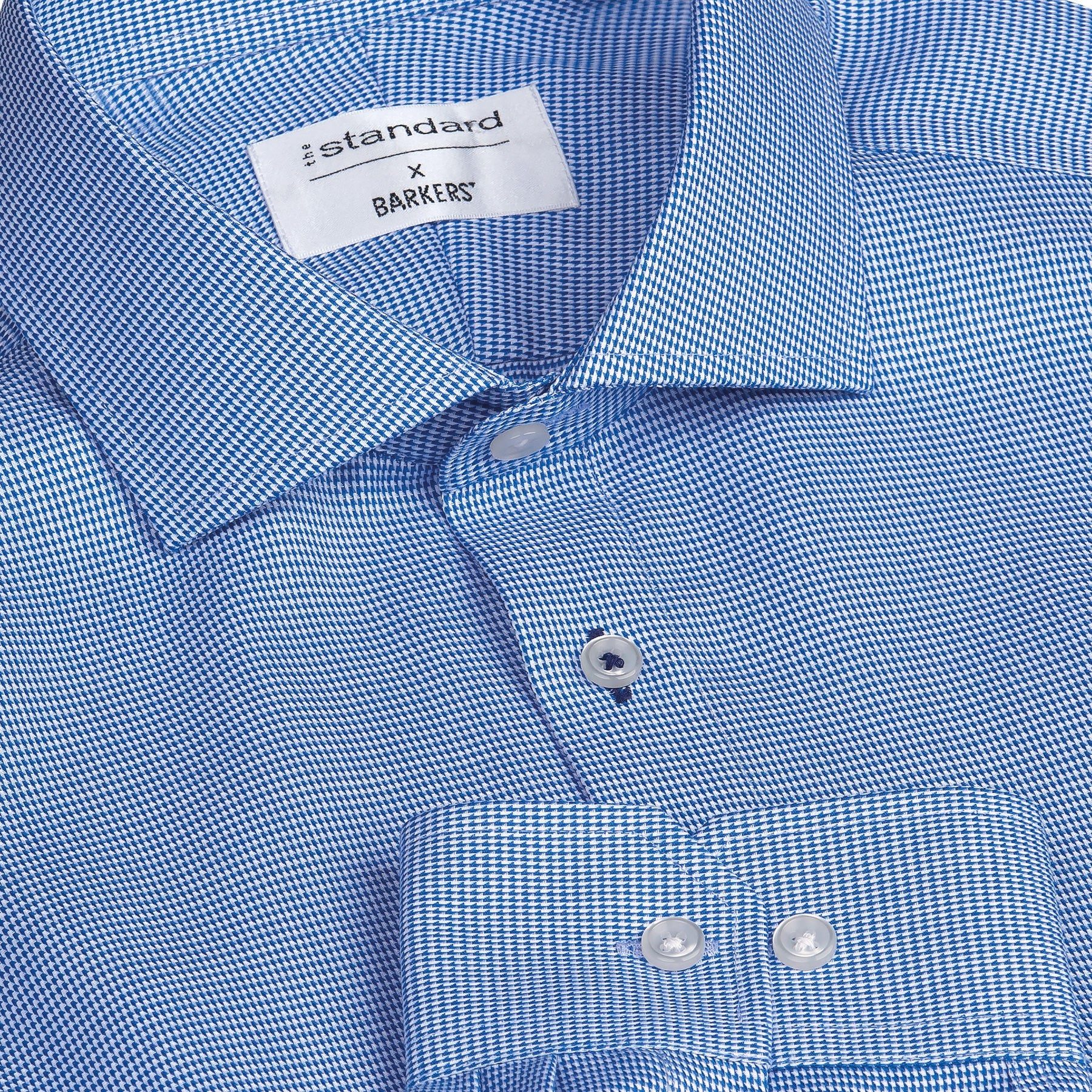 The Quadrant shirt has a luxury liquid finish for additional strength and luster with a fashion collar. It features a mitred corner detail on the adjustable cuffs and has some contrast stitching. The fabric is a soil release, wrinkle free 100% cotton yarn dyed houndstooth.