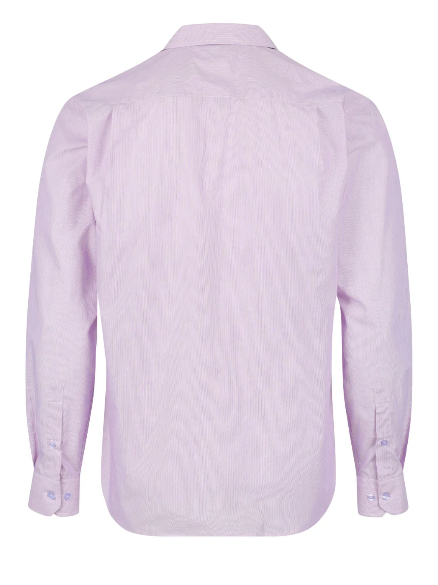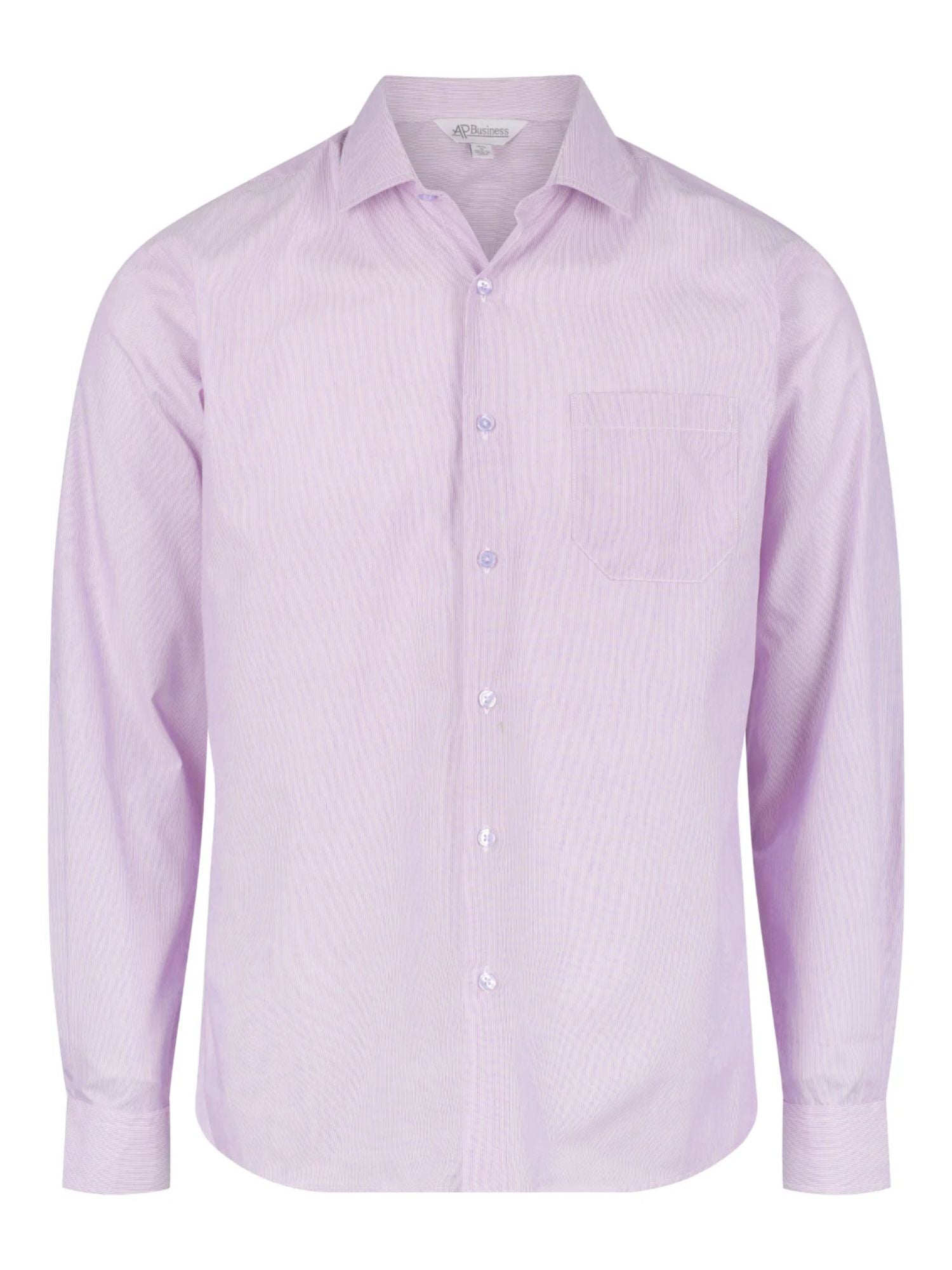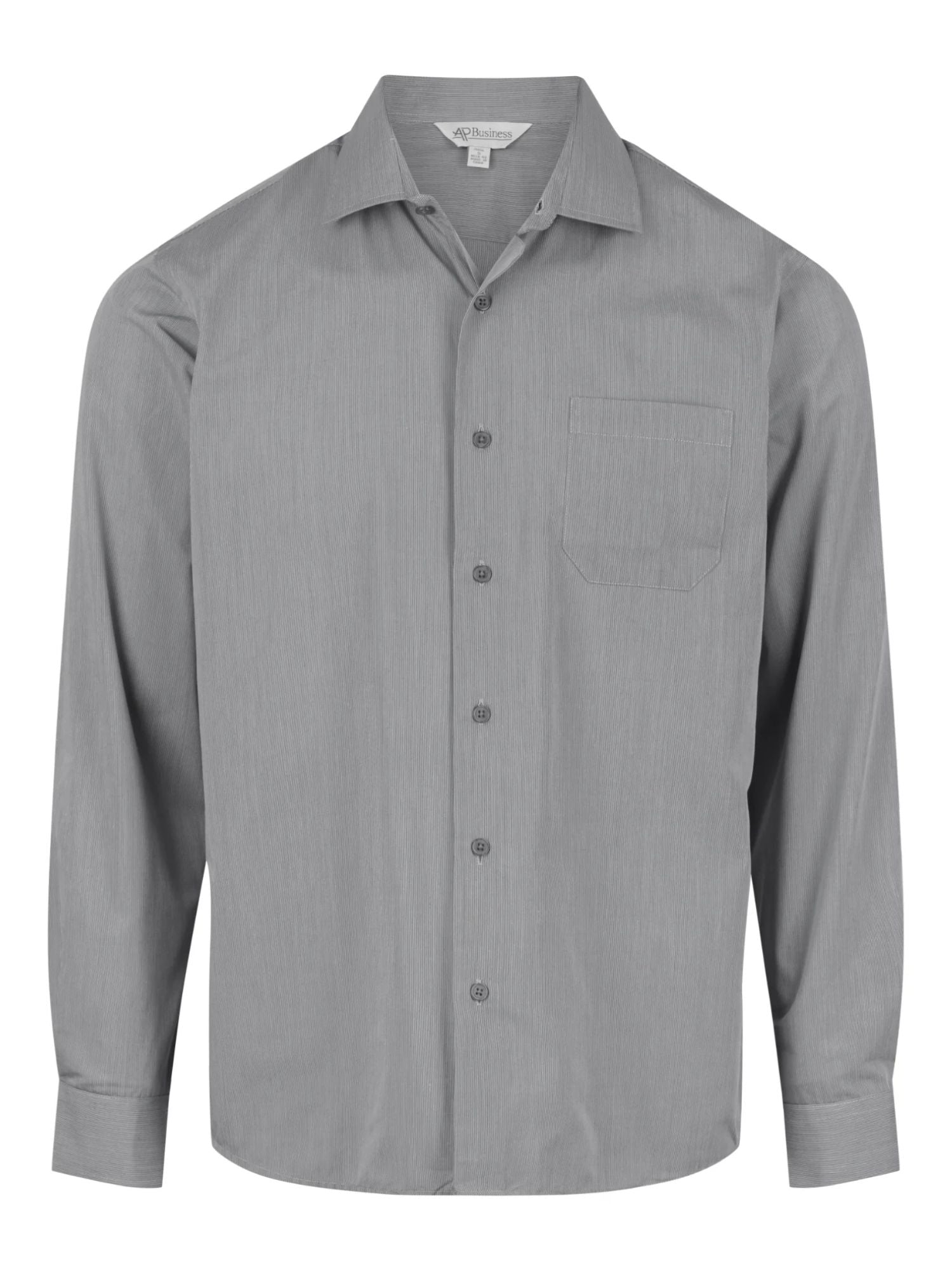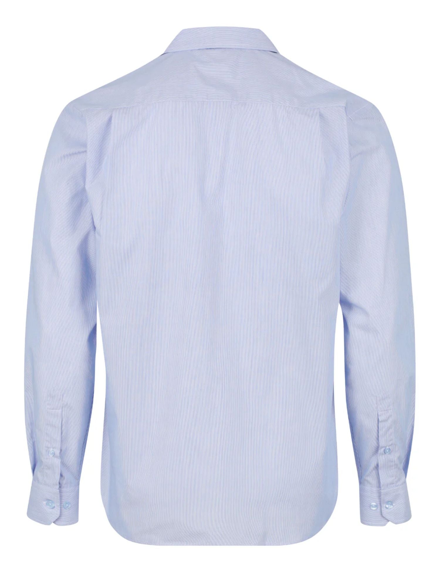 A top-stitched collar and cuffs and an angled edge corner on the cuff and the pocket.