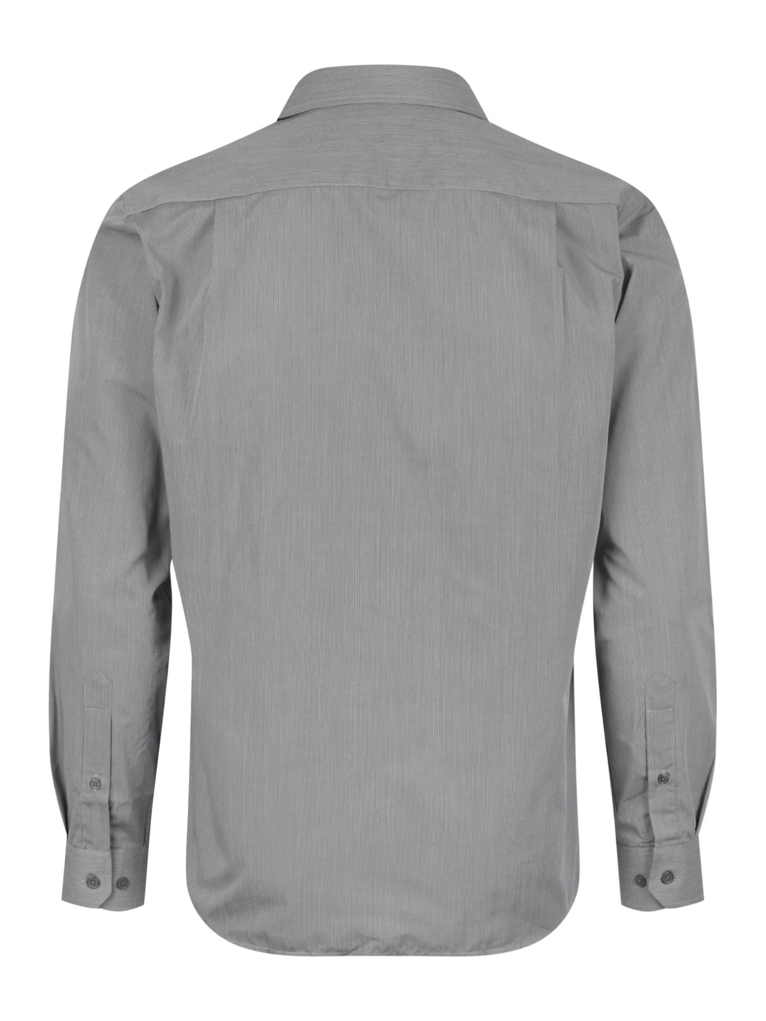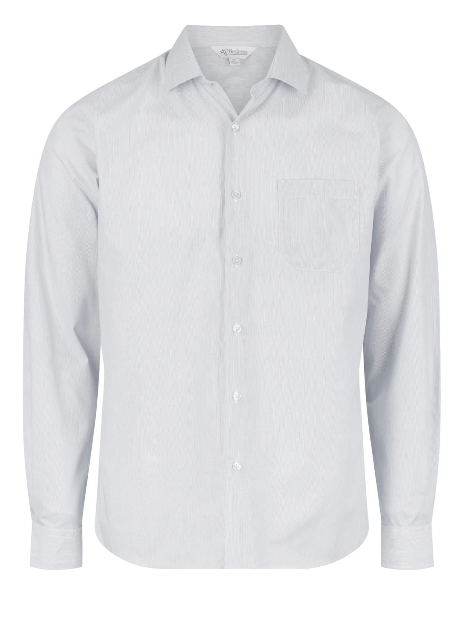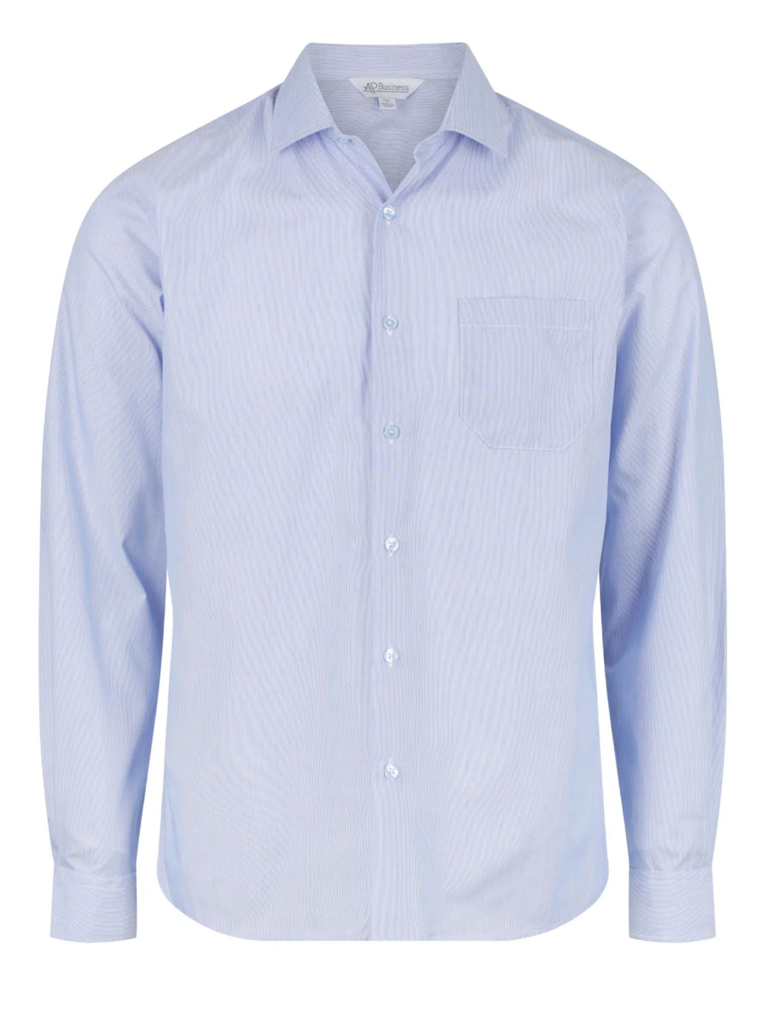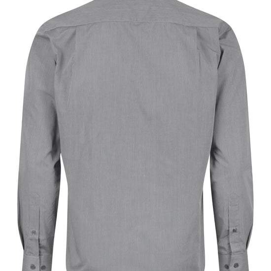 A top-stitched collar and cuffs and an angled edge corner on the cuff and the pocket.
