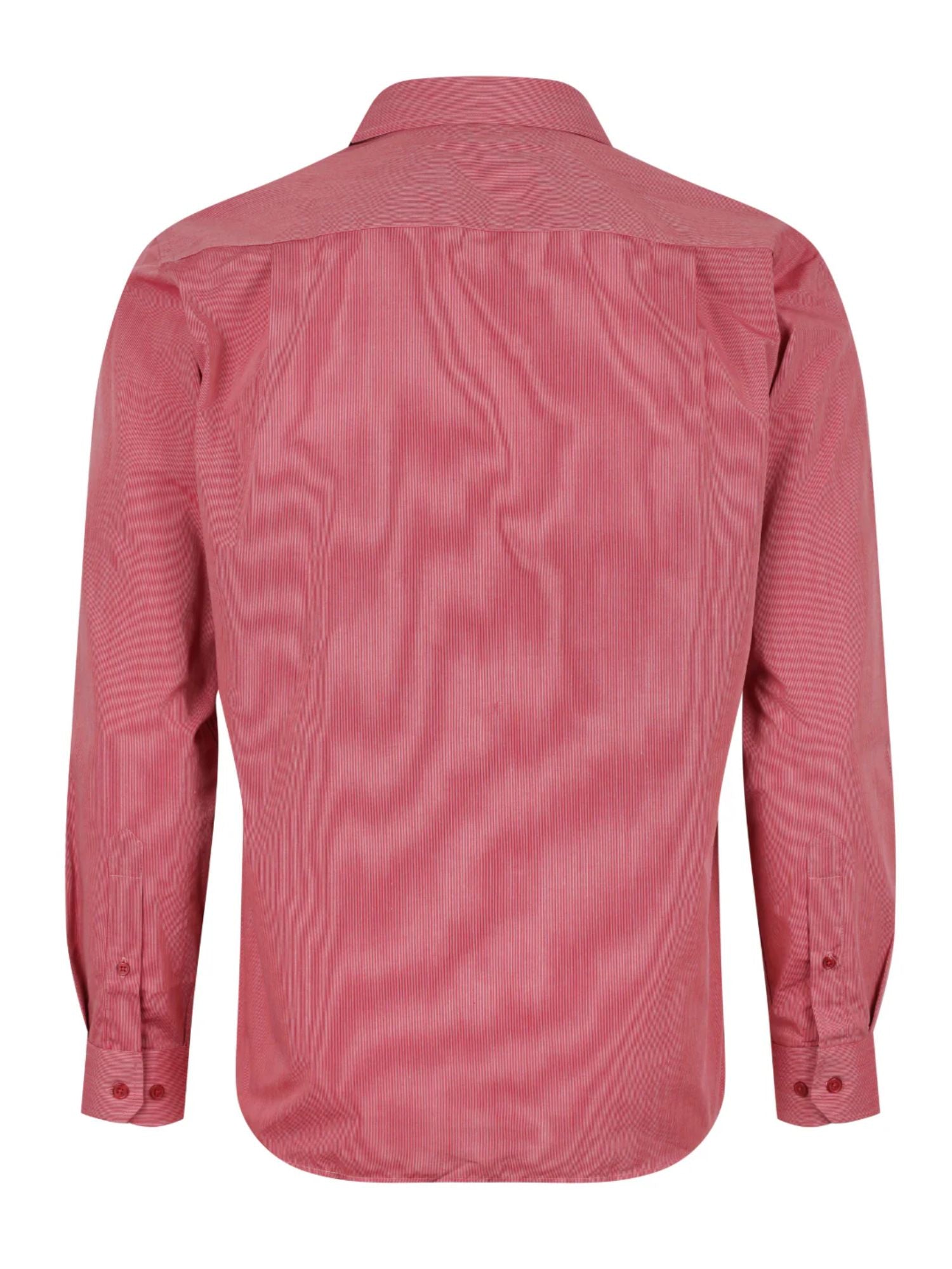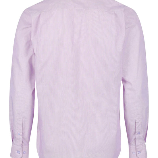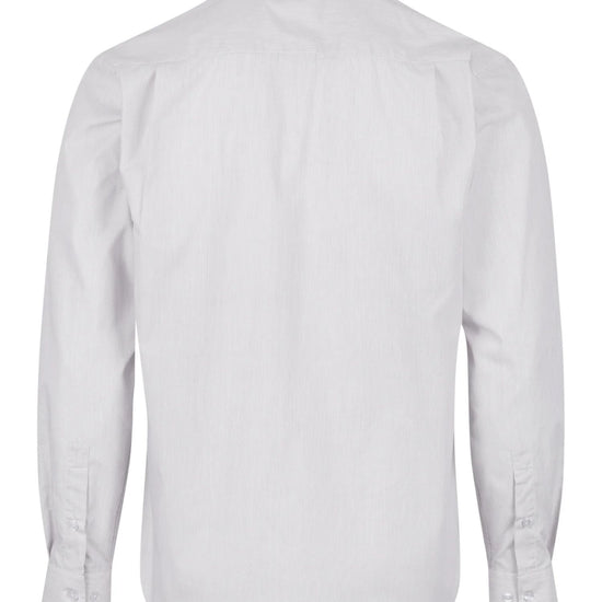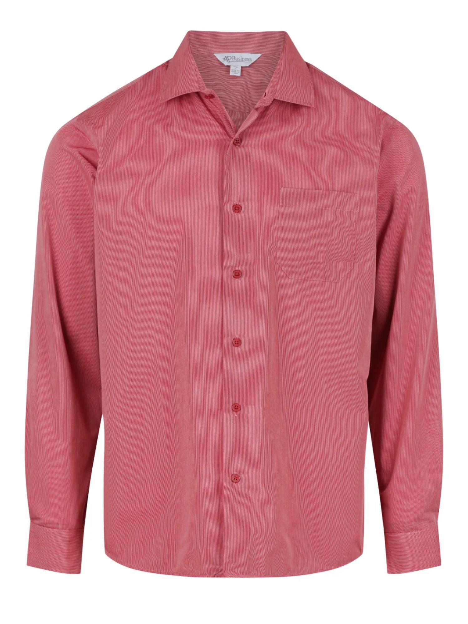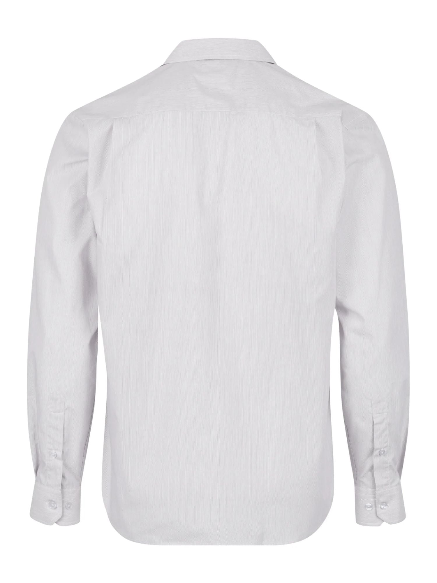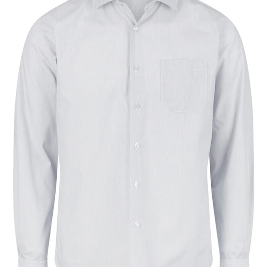 A top-stitched collar and cuffs and an angled edge corner on the cuff and the pocket.