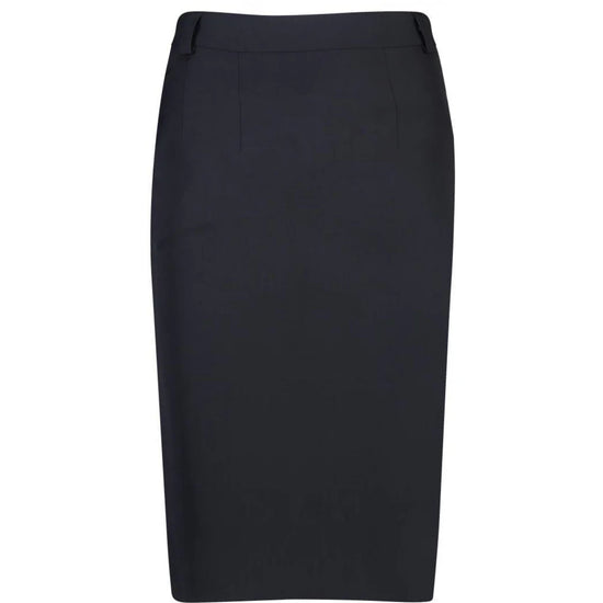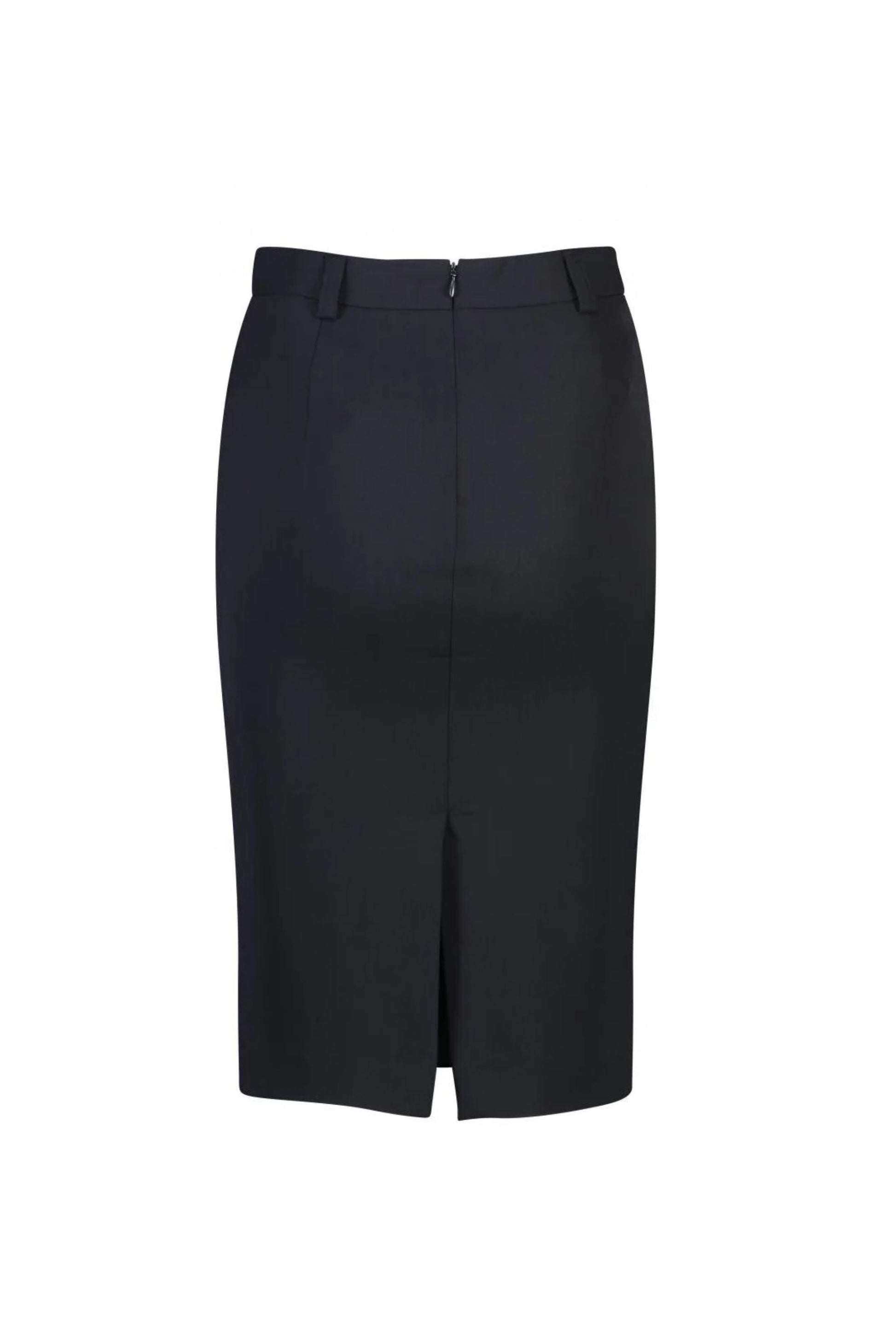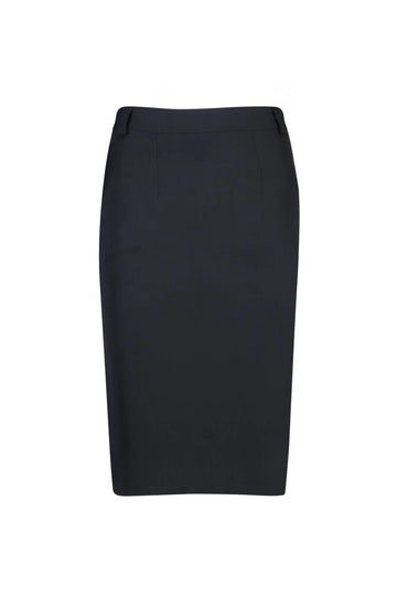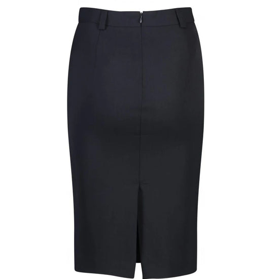 Our Below Knee Skirt is a mid length fully lined style. Double pleat front with two hidden side pockets and belt loops on the waistband. A concealed centre back zip and back slit provides a seamless finish.