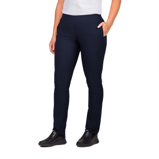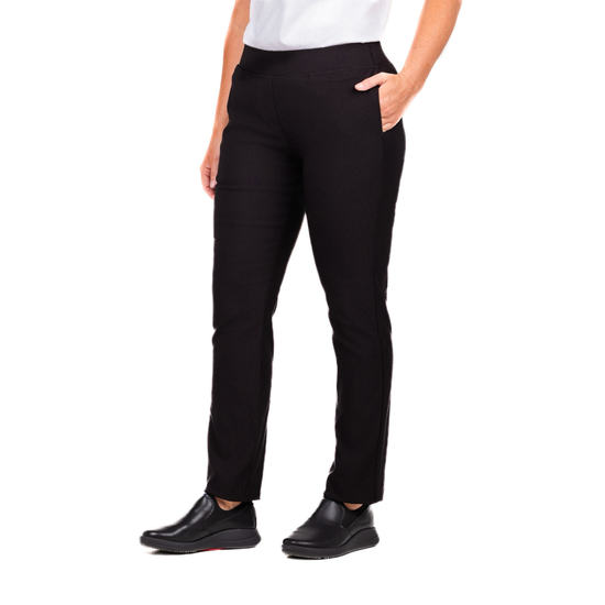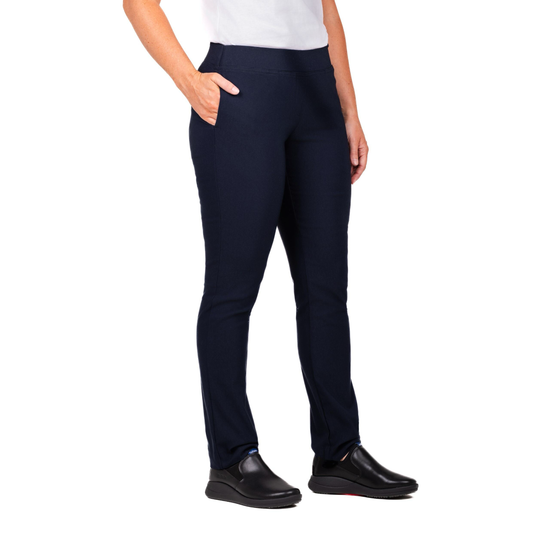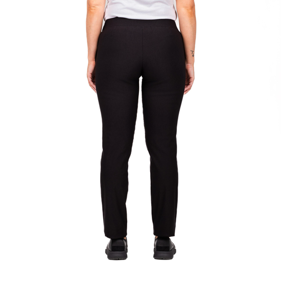 Our Bengaline Pants are a slim, stretch pull style with side pockets, and back waist darts. Designed with your comfort in mind, these trousers are ideal for any professional work setting. Cropped length also available in this style