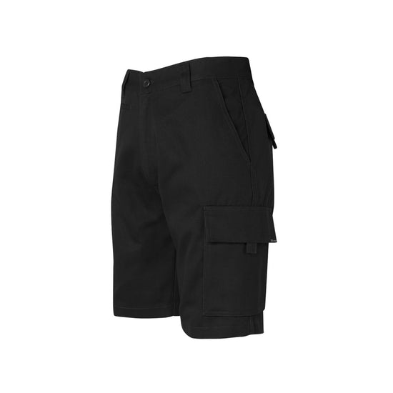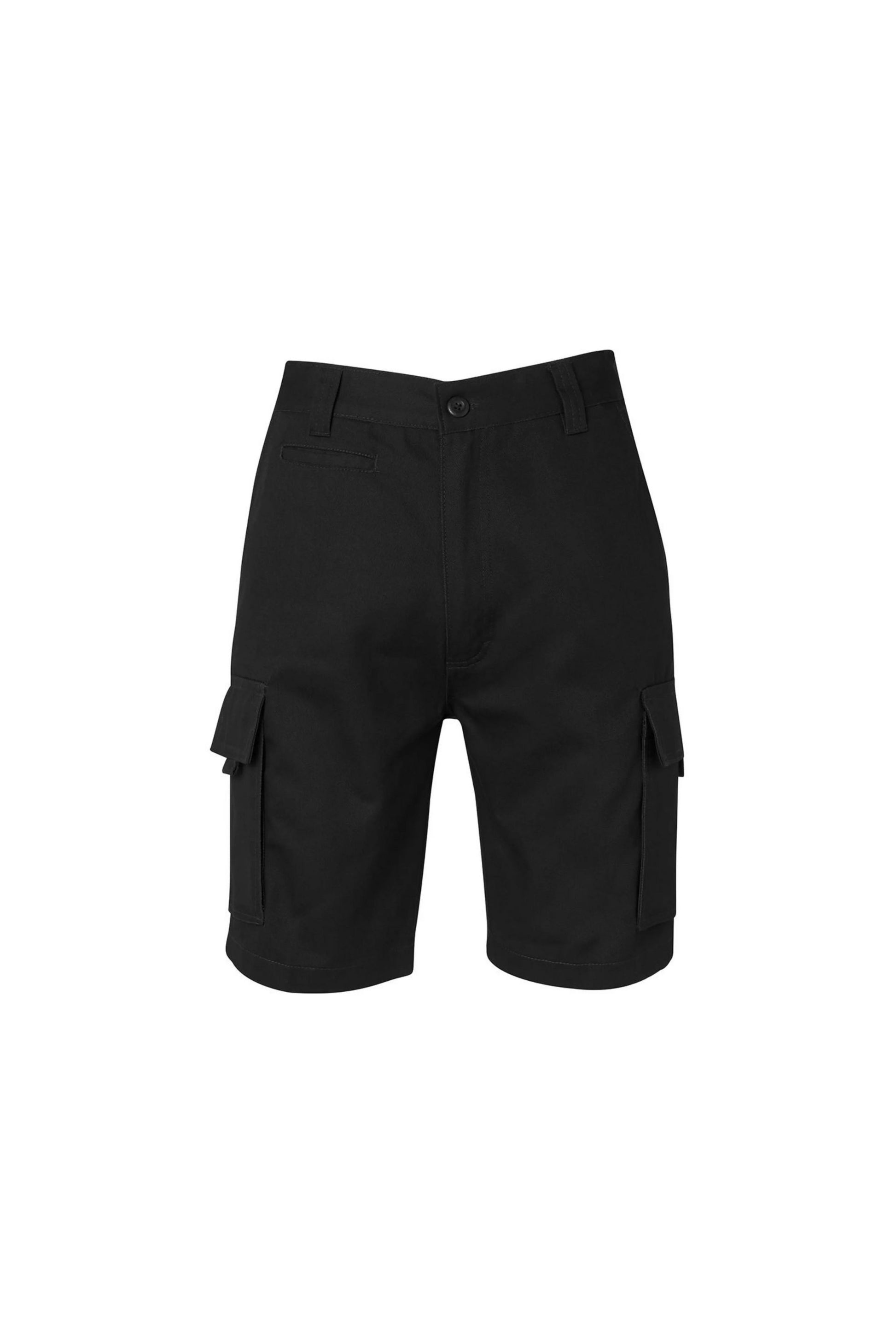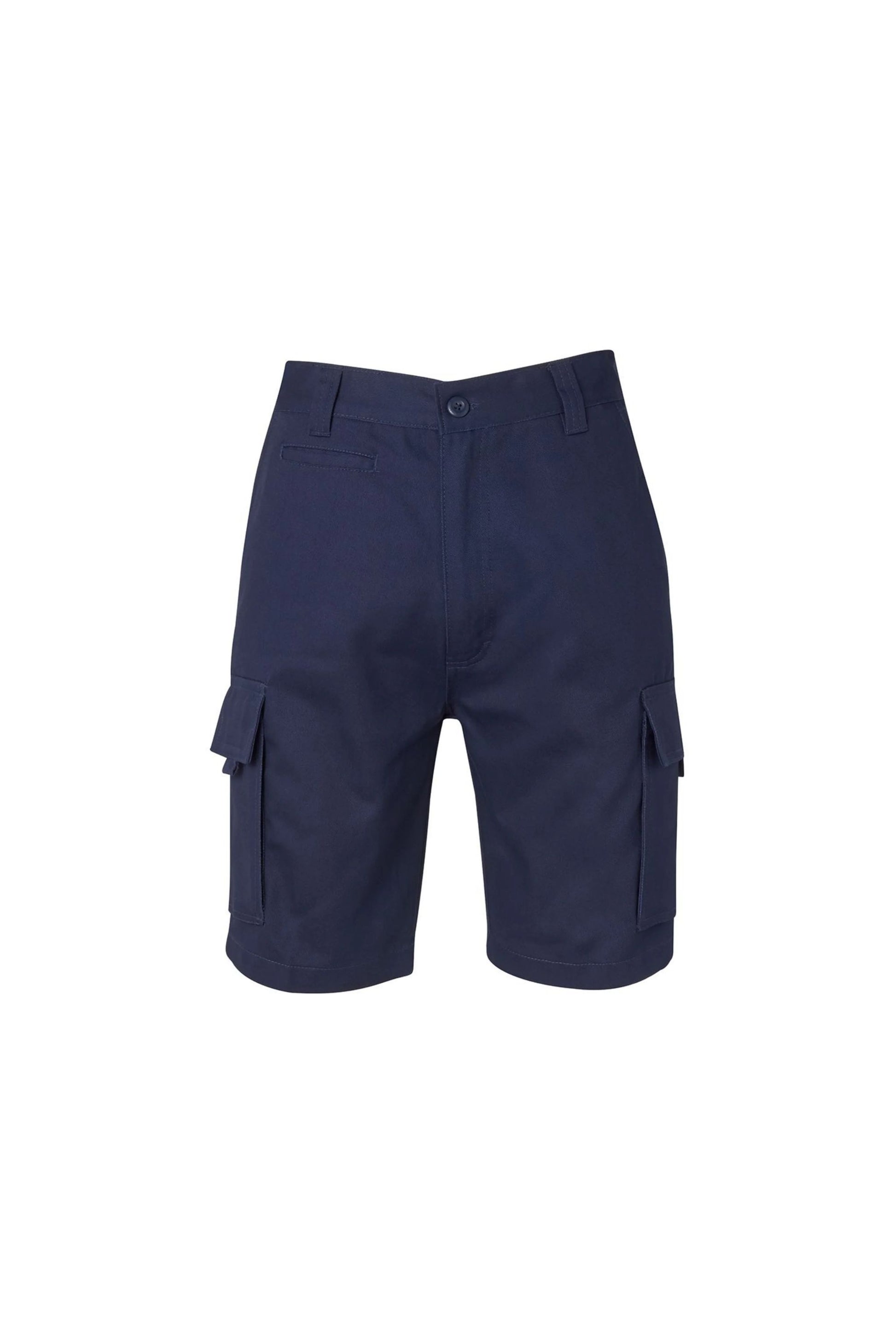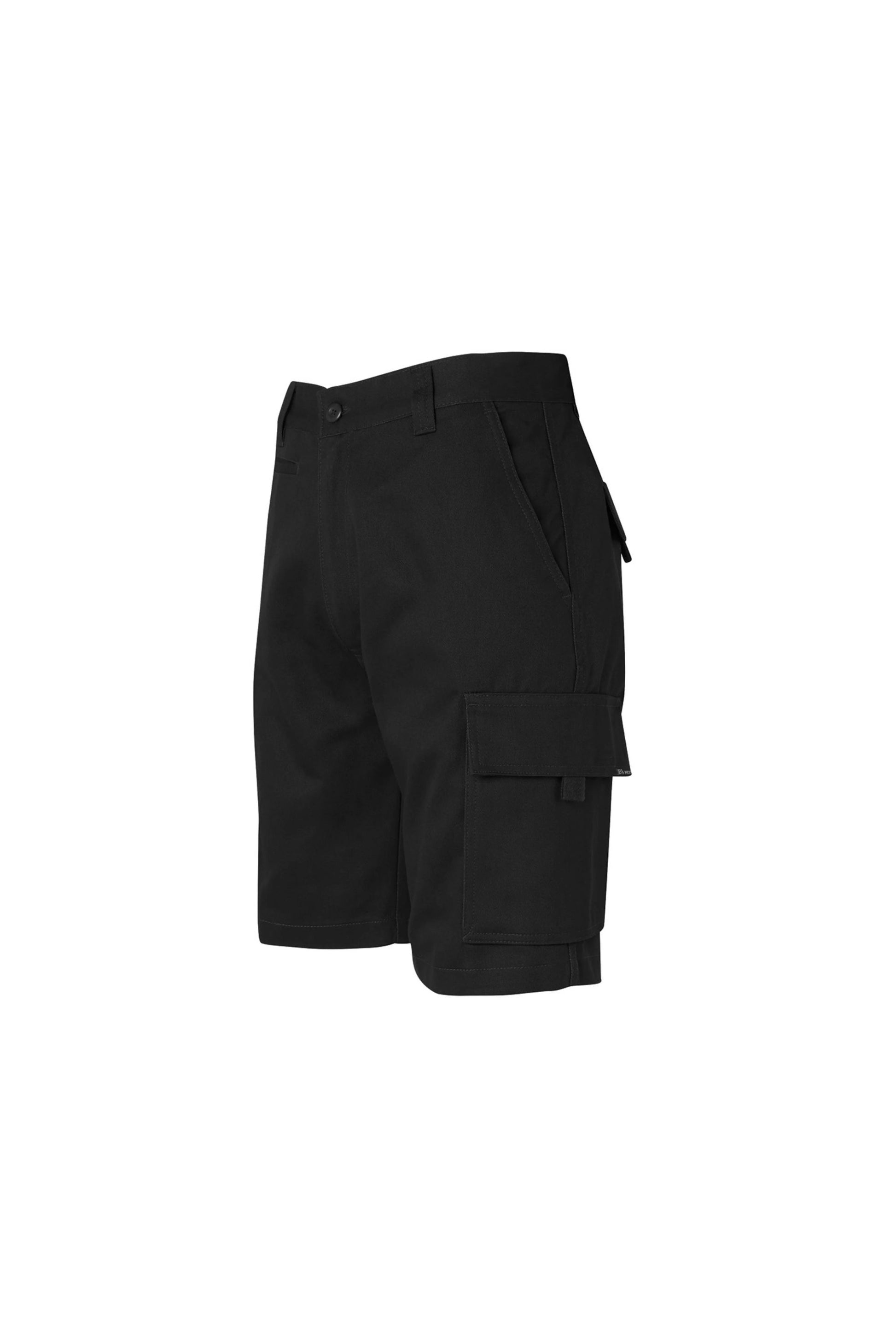 Mens plain front short with side pockets and cargo leg pockets. Heavy 310gsm 100% Cotton drill fabric is mercerised and pre-shrunk.