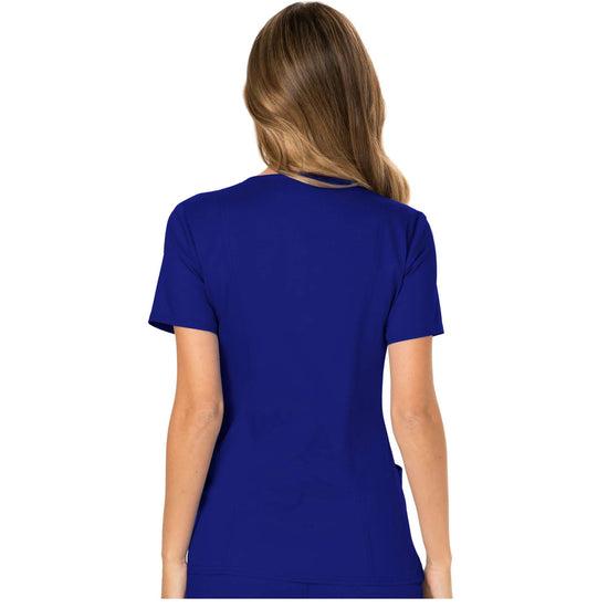 A Modern Classic fit Mock Wrap Top designed using Cherokee's renowned fabric and style. Featuring front shoulder yokes, two patch pockets, an instrument loop, a logo label with a bungee loop, front and back princess seams, and side vents. This garment is ideal for the healthcare environment.