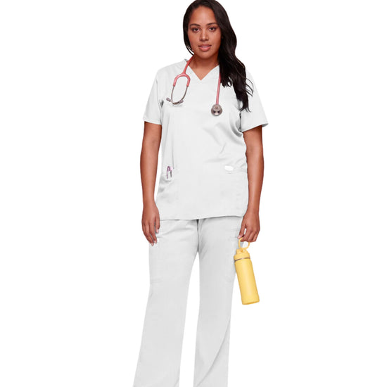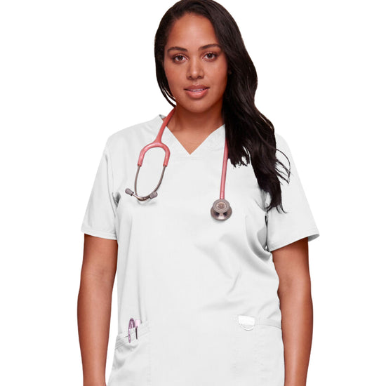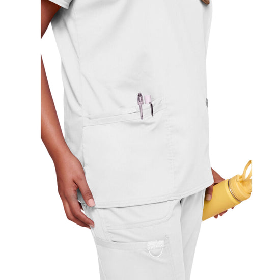 The Cherokee Women's Revolution V-Neck Top is a classic fit. Featuring patch pockets, an instrument loop, pencil stitch, logo label with bungee loop, back princess seams, and side vents. Cherokee is renowned worldwide for its fabric and style, making this top a healthcare essential!