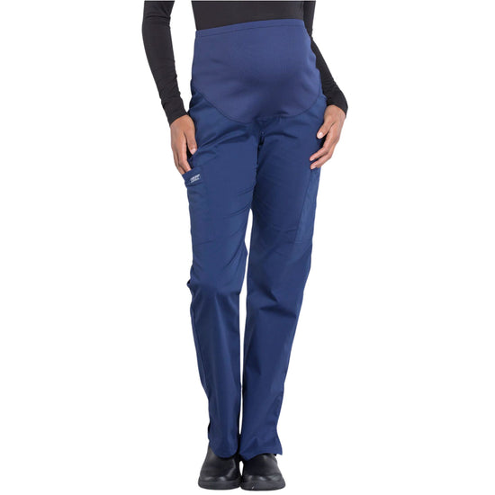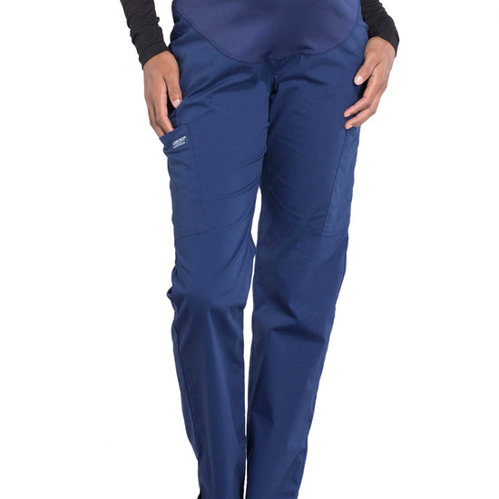A great fitting, Maternity straight leg pant features a soft rib-knit panel that stretches over your belly for maximum coverage and support, and grows with you. Also featured are two cargo pockets, a cell phone pocket, back pocket and side vents. Our comfy Maternity styles are designed to support and flatter using your current size, so there's no need to size up. When ordering Cherokee Workwear Maternity styles, remember to order your pre-pregnancy size. Inseam: 31"