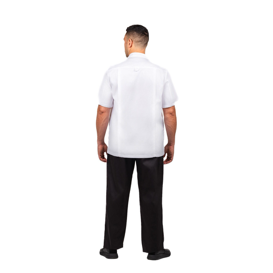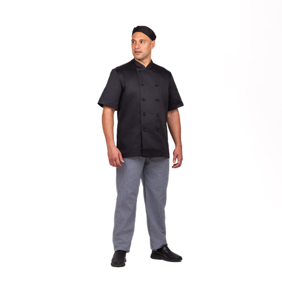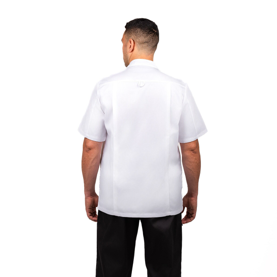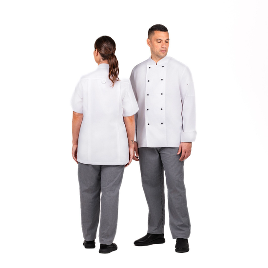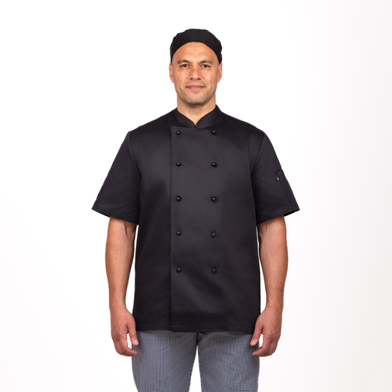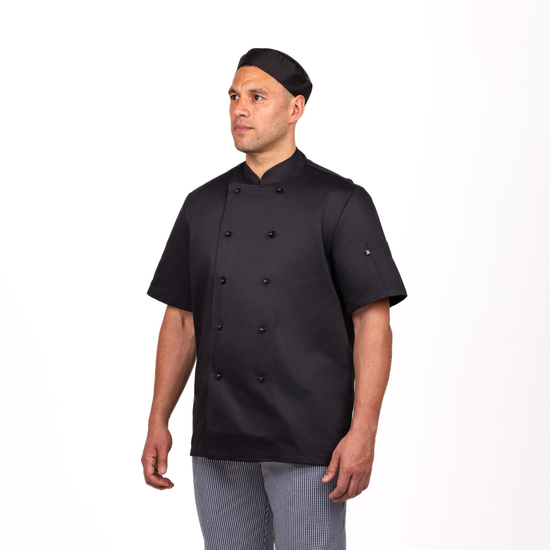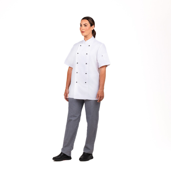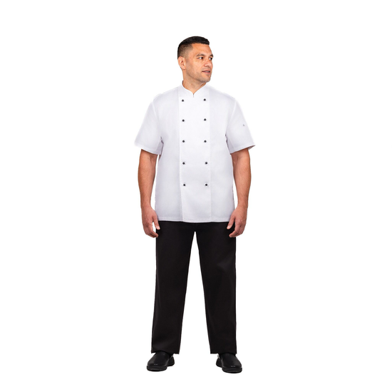 Our Club ll Short Sleeve Chef's Jacket is a classic style jacket catering to the Hospitality Sector. Features include an action back for shoulder mobility, a sleeve pocket with a pen division and side splits at hem to allow for ease of movement.