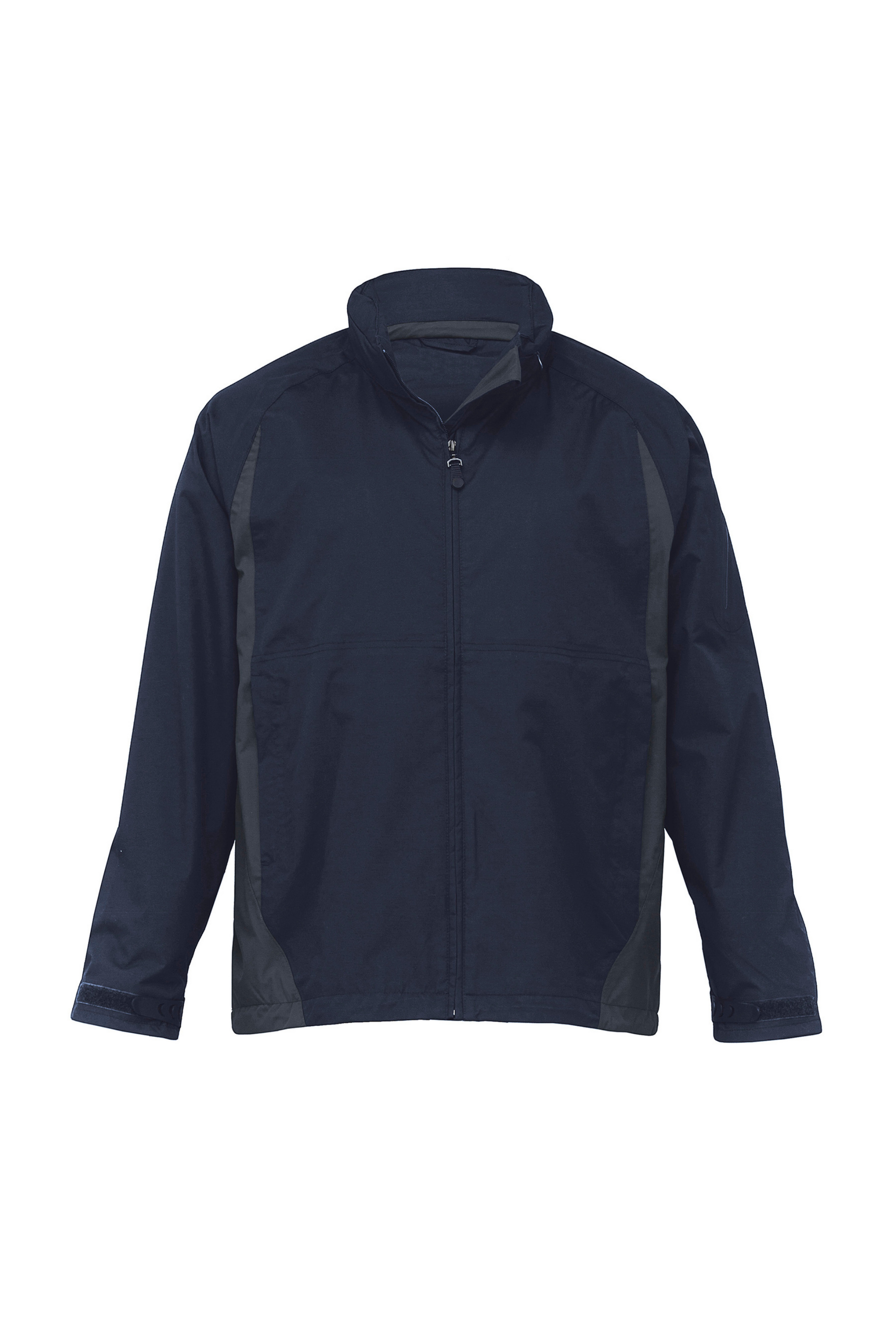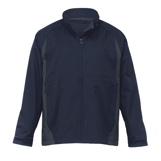 100% nylon dobby/, showerproof/, classic fit jacket fully lined with poly mesh. Partially seam sealed/, contrast side panel detailing/, zippered side pockets and MP3 pocket inside with loop on storm flap. Concealed high-zip plaquet with rubber puller and internal storm flap. Hidden tuck away hood/, tailored hem with elastic cord and zippered branding access. XS and S are a smaller fit for women.