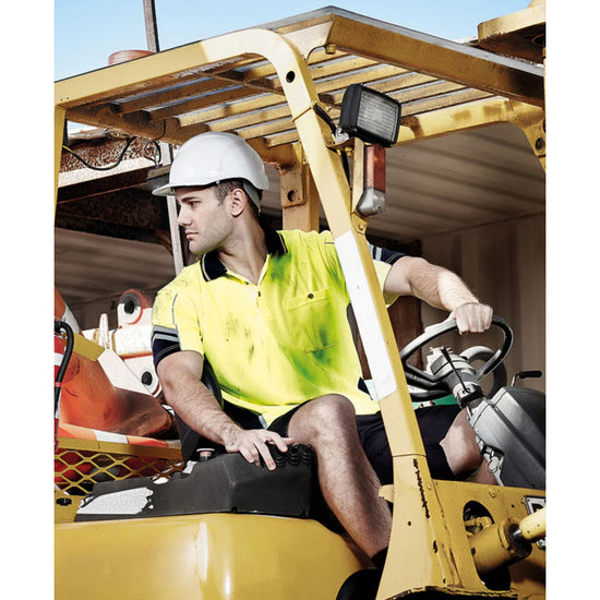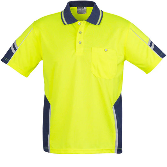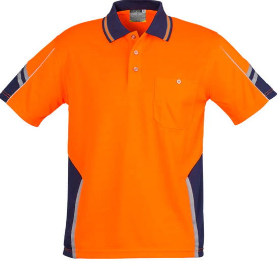 The Mens Hi Vis Squad Short Sleeve Polo with moisture wicking properties features a chest pocket with pen insert and arm and side panel design detail. It has reflective piping and is highly breathable and quick dry perfect for active work environments.