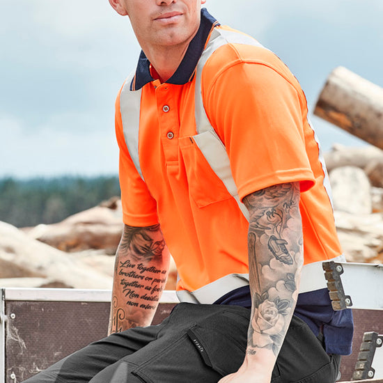 The Men's Hi Vis Spliced Short Sleeve Polo is highly breathable and quick dry, perfect for the active worker. It has moisture wicking properties and a chest pocket with pen insert. This is and easy to care for, durable Class D Polo.