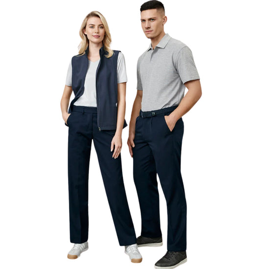 - Flat front with 2 angled pockets/, 2 back welt pockets