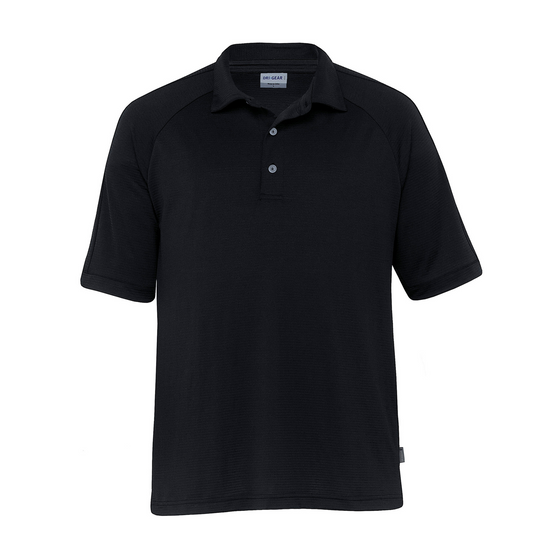 180gsm 96% polyester 4% elastane mechanical stretch ottoman/, moisture wicking/, UV protection and classic fit. Self fabric two piece collar/, raglan sleeve with cuff/, clear DRI GEAR button plaquet/, side splits at hem and DRI GEAR side pip.