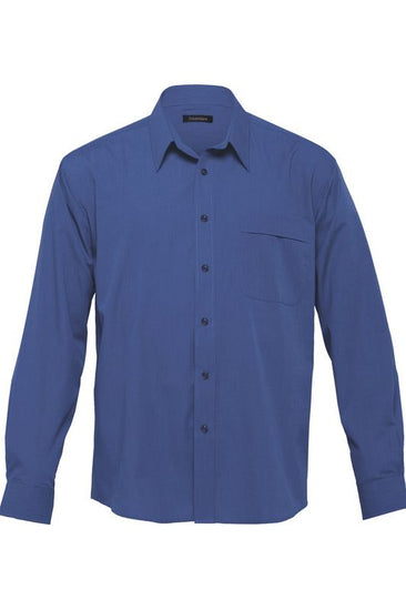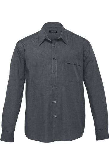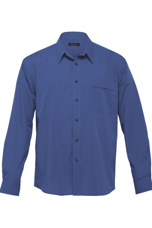 65% Polyester 35% cotton.Men's standard fit style shirt with front chest pocket. Long sleeves.