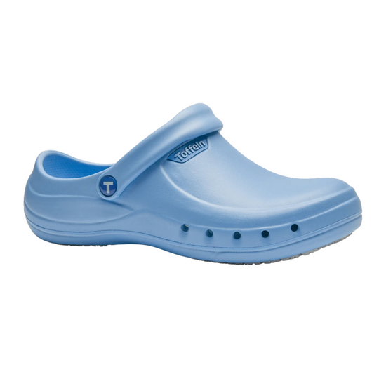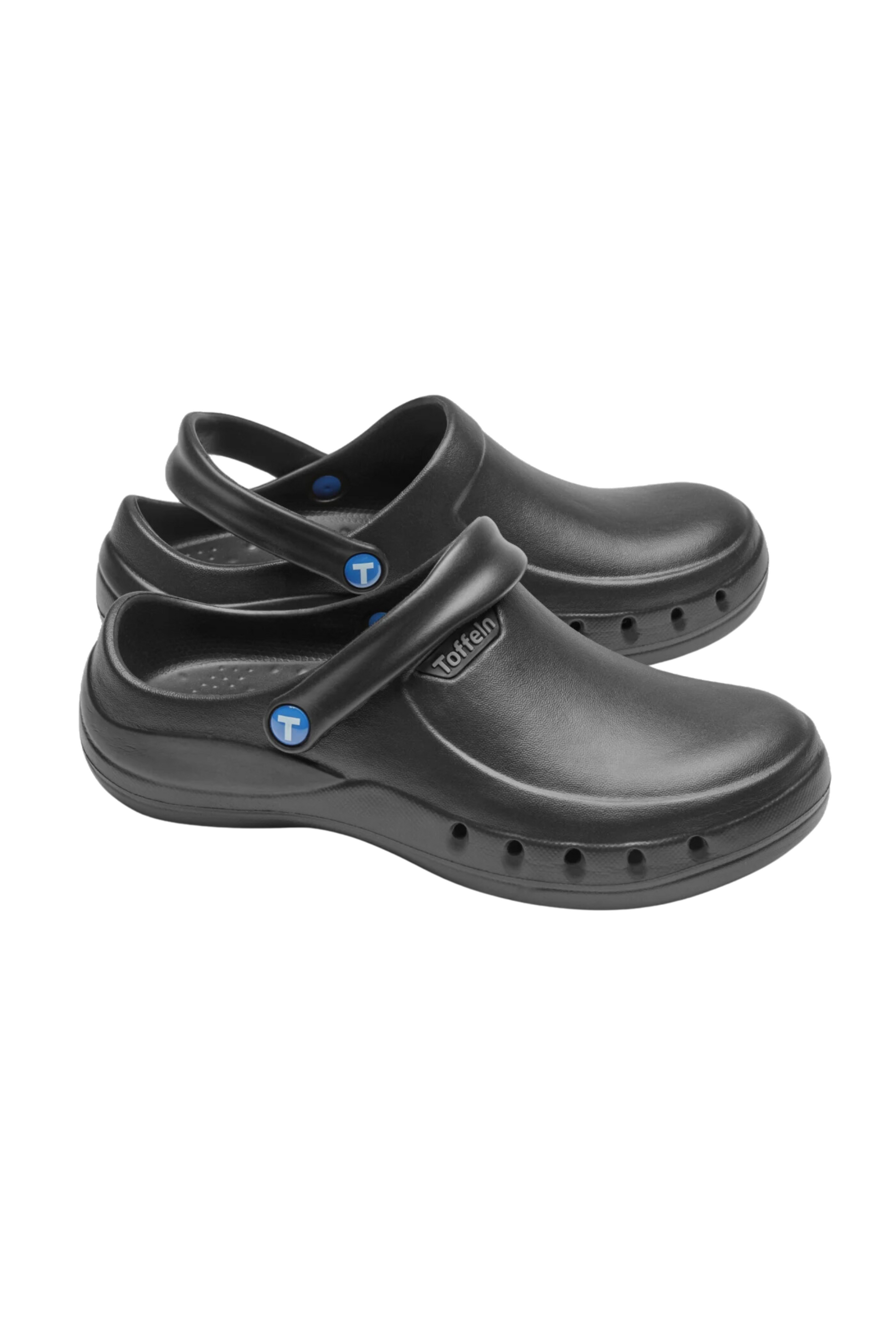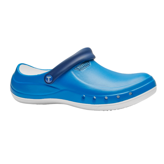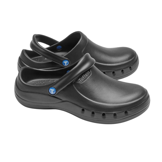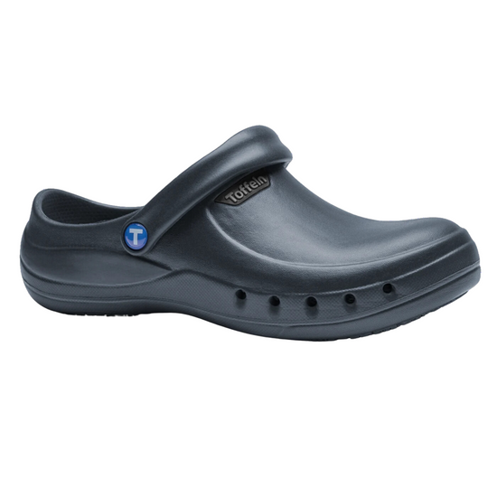Toffeln took the legendary EziKlog and made it even better. The new, soft feel E-Tech material combines with an enhanced footbed to deliver even greater shift-long comfort. Whilst the GripSafe Extreme pattern offers improved slip resistance, making the EziKlog, the safest, most stylish clog they've ever made.