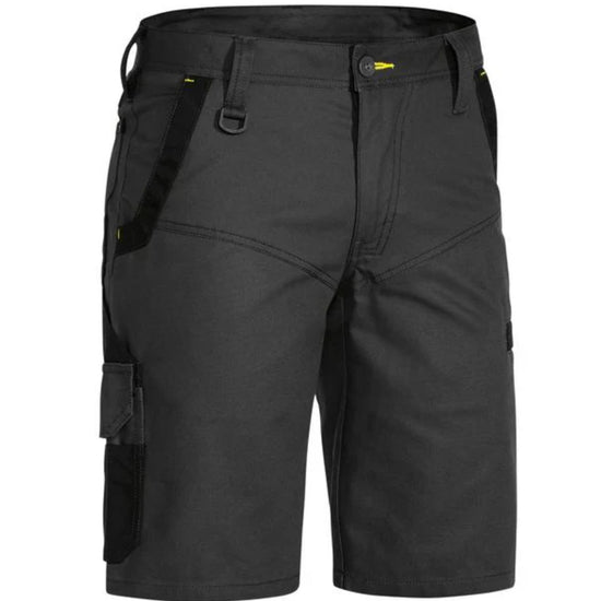 The Flx & Move Strech Cargo Shorts are a modern-fit industrial work pant designed with comfort and functionality in mind. Made from stretch canvas with contrast yellow internal trims and bar tacks where reinforced. Alongside the many utility pockets and loops included, these shorts also offer Sun Protection 50+ and Static Control.