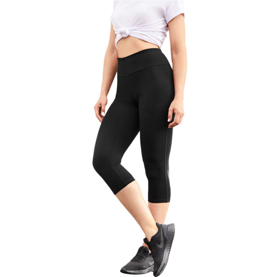 Ladies modern fit leggings made from power stretch performance fabric with no show through. Extra wide comfort waistband with flat seams/, waistband can be worn up for more coverage or folded down onto the hip. Reflective visabilty tape leg feature/, internal key fob leg feature. 310gsm. UPF rating - Excellent.