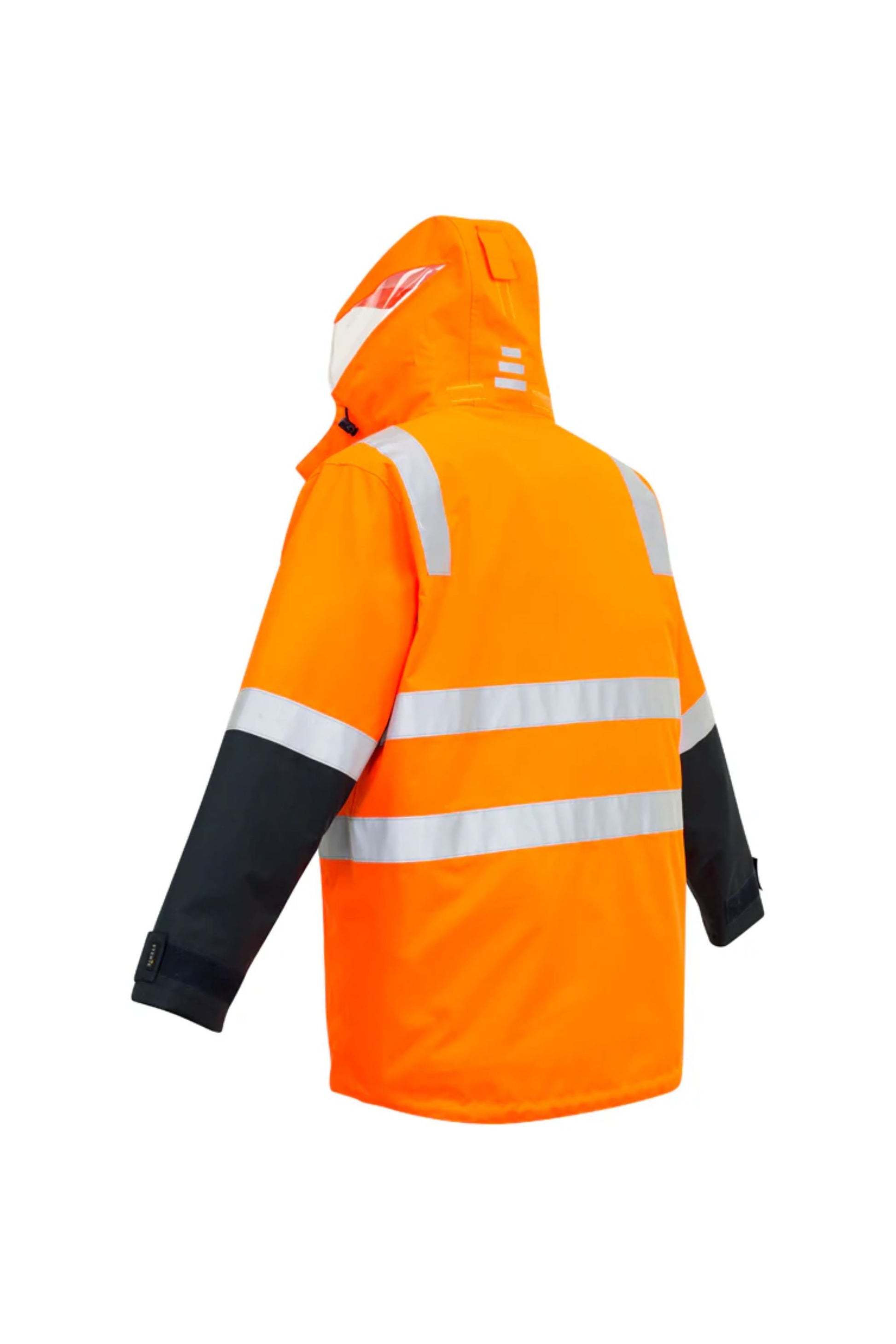 - Concealed hood with unique clear panels to increase peripheral vision while wearing hood