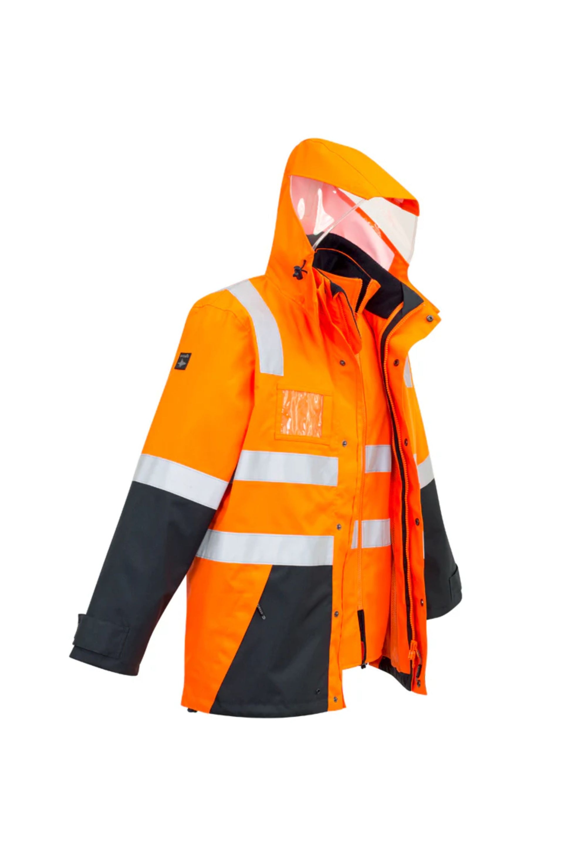 This Mens Hi Vis 4 in 2 Waterproof jacket is fully seam sealed yet still breathable. It can be worn in many different way with the reversible vest able to zip into a jacket to be worn separate or combined. it features a warm fleece lining inside the best and and innovative reflective panel on hood for increased visibility. This jacket is full of many great features and is the perfect all rounder jacket that covers all the bases.