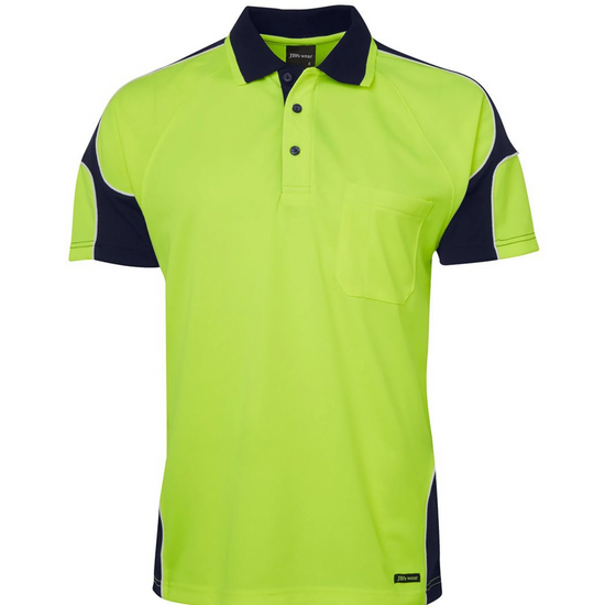 100% Polyester/, 160gsm micro mesh regular fit polo. Straight hem with side vents/, contrast tipping collar/, easy care and quick dry. Contrast side/, sleeve and back panel with piping/, front chest pocket reinforced with inserts.