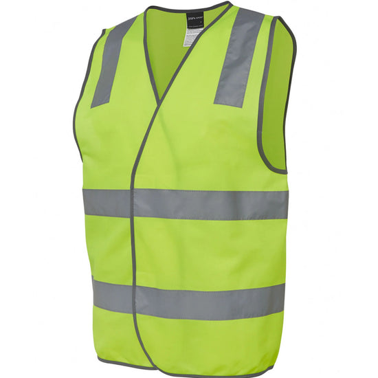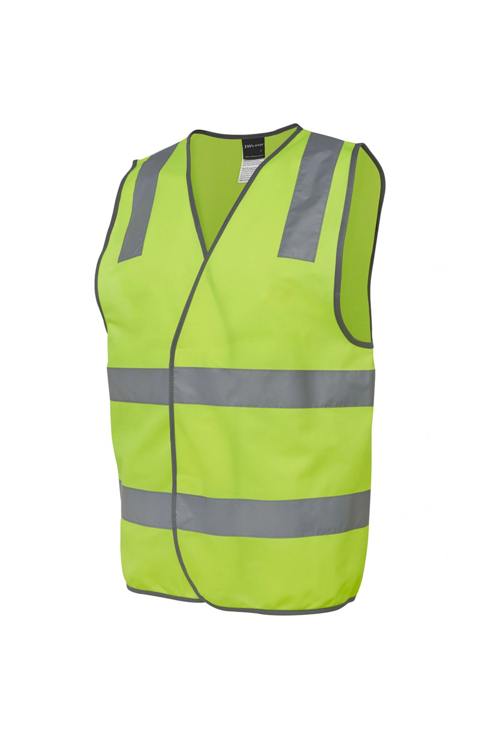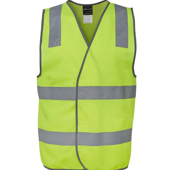 100% Polyester Hi Vis Safety Vest. Complies with Standards AS/NZS 1906.4:2010 AS/NZS 4602.1:2011 Day and Night. Reflective tape and front flap with Velcro closure.