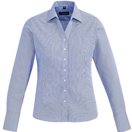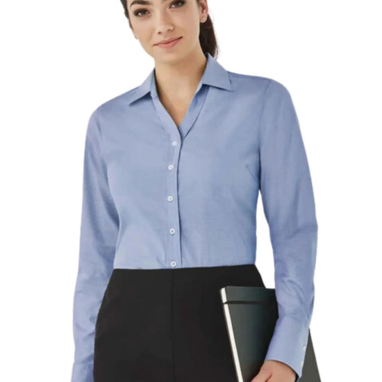 The Womens Hudson Long Sleeve shirt is semi-fitted with an open neck. It features contrast trim on the inside yoke and a inverted pleat in back yoke for comfort. The fabric is yarn dyed 100% cotton with an easy care finish, it is breathable, lightweight and comfortable, perfect for warmer climates. The shirt can be worn tucked in or out and the wide cuffs can be folded back for a different look.