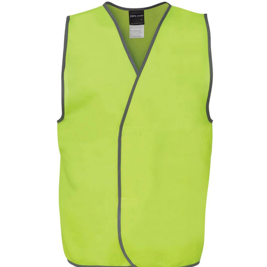 A classic-fit safety vest made from durable polyester tricot with a front flap and hook-pile tape closure for easy wear. Finished with contrast grey binding and compliant with AS/NZS 1906.4:2023 and 4602.1:2011 (Day Only). Sizes 6XL and 7XL available only in Lime and Orange.