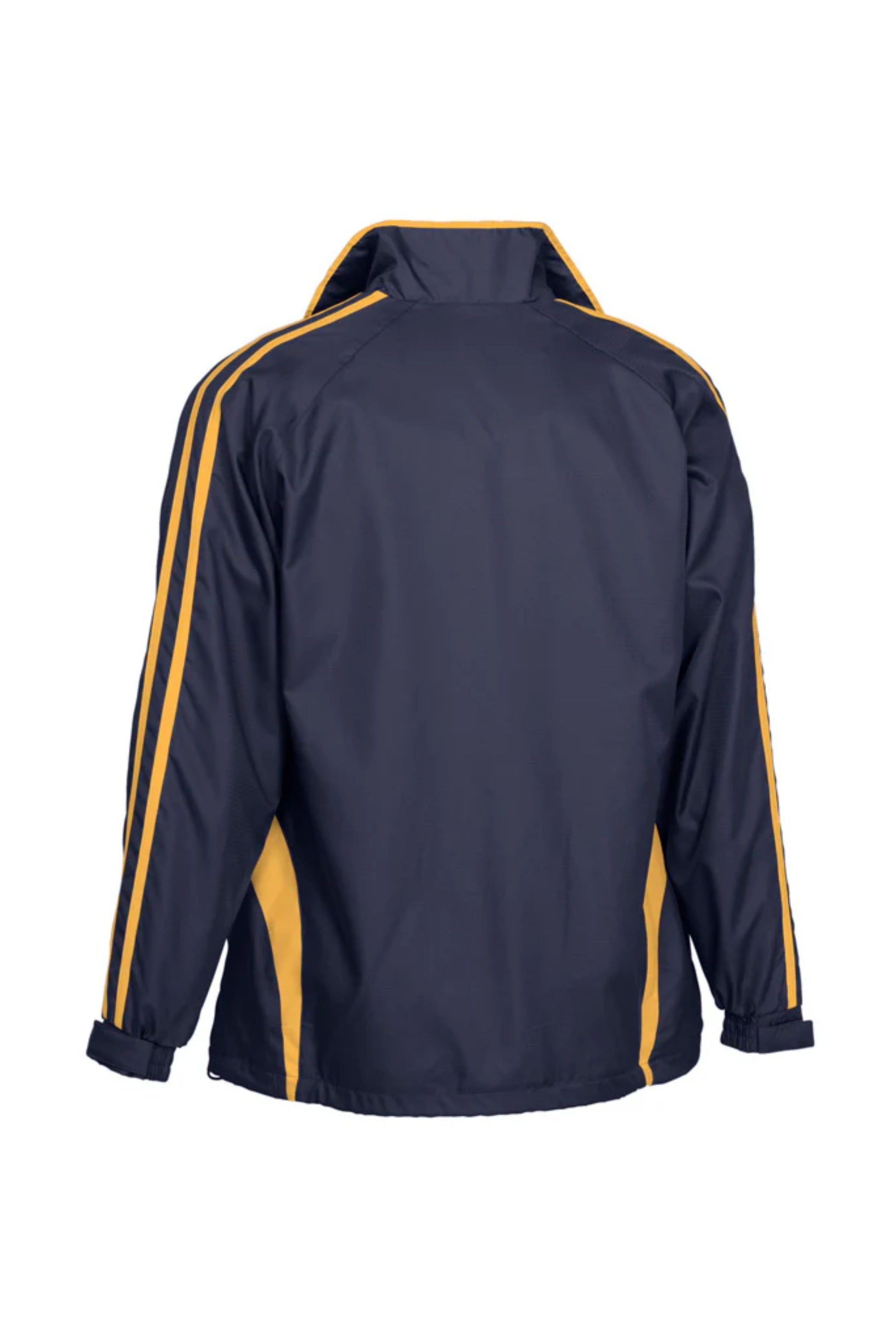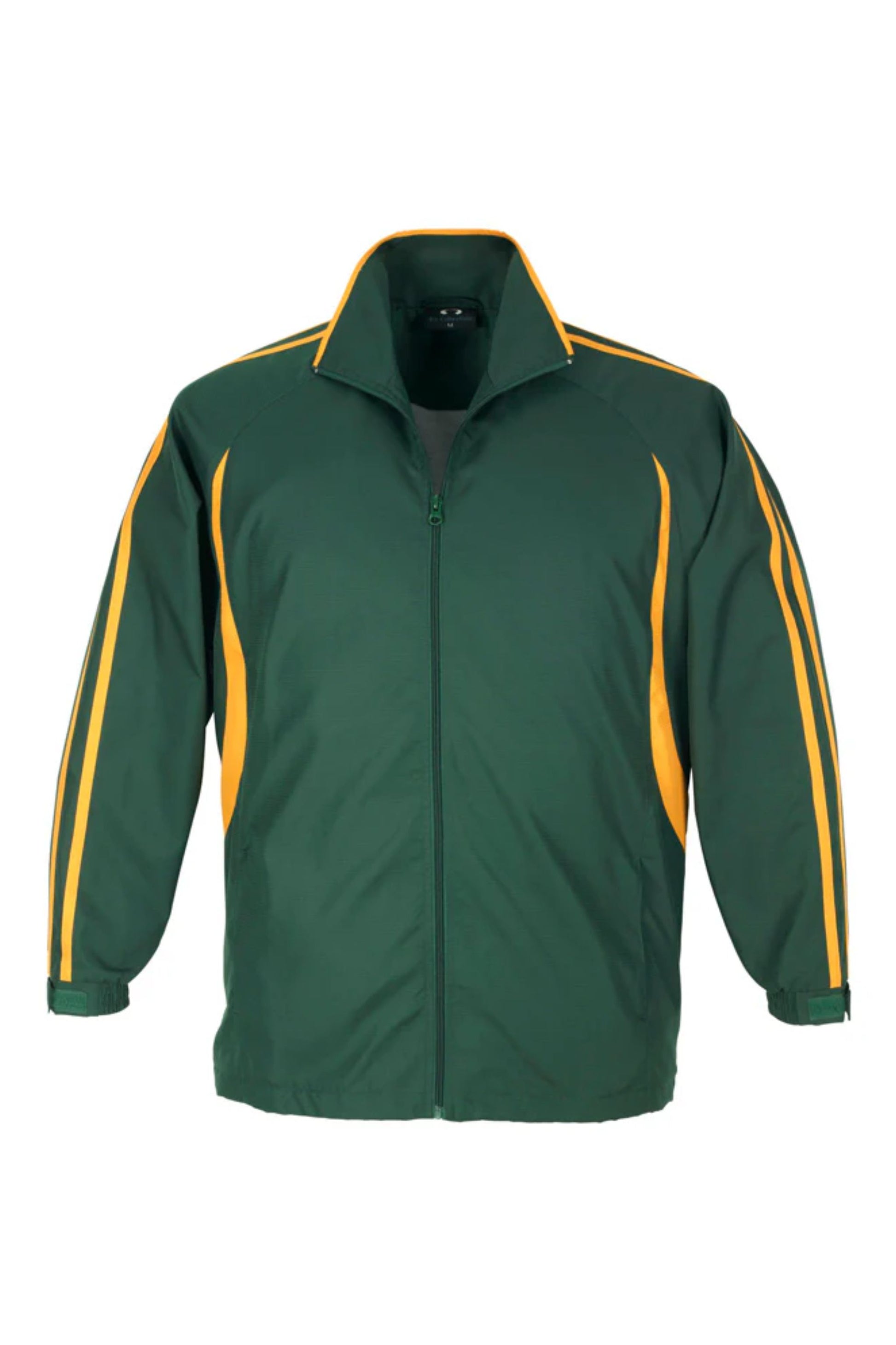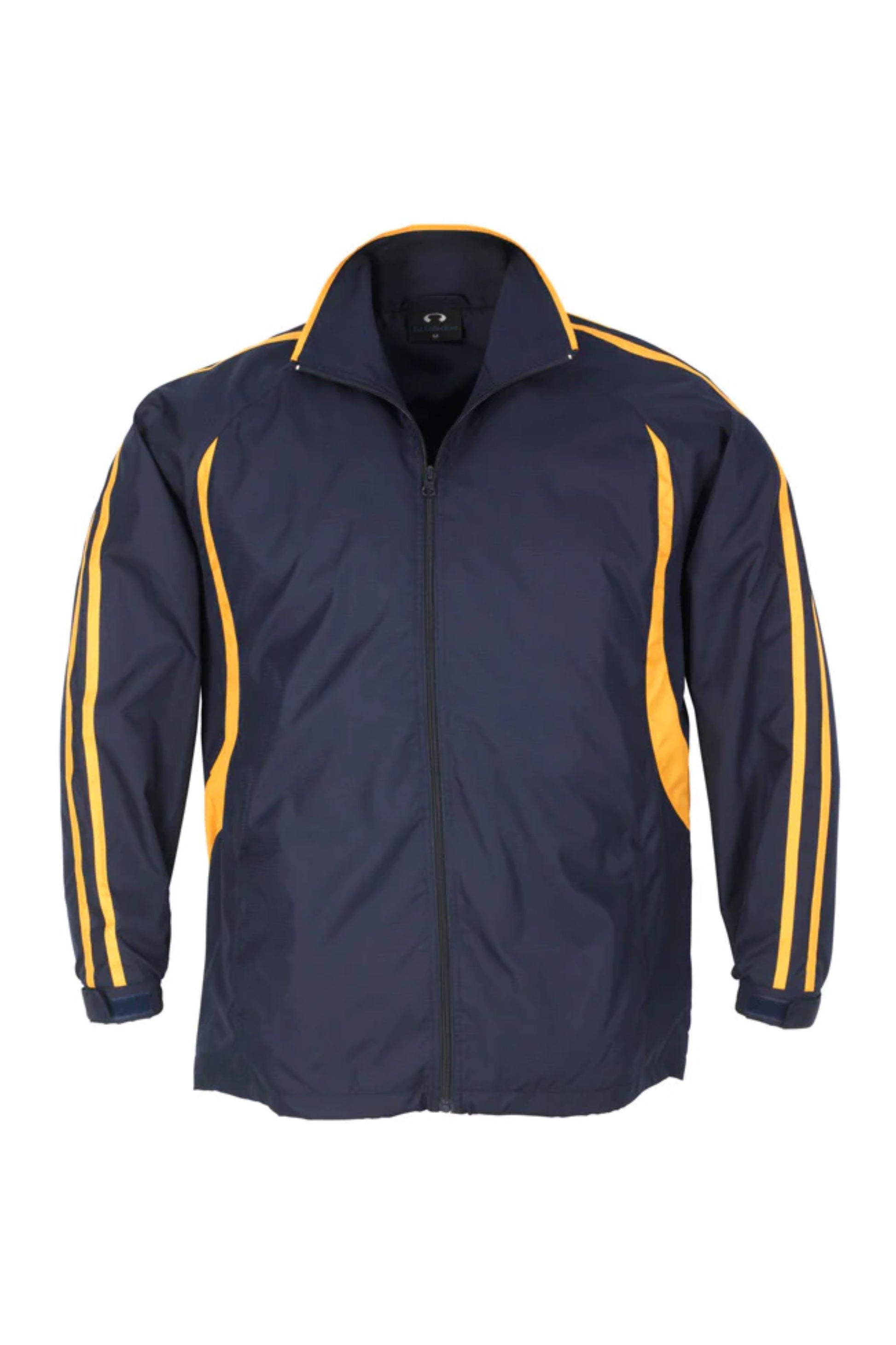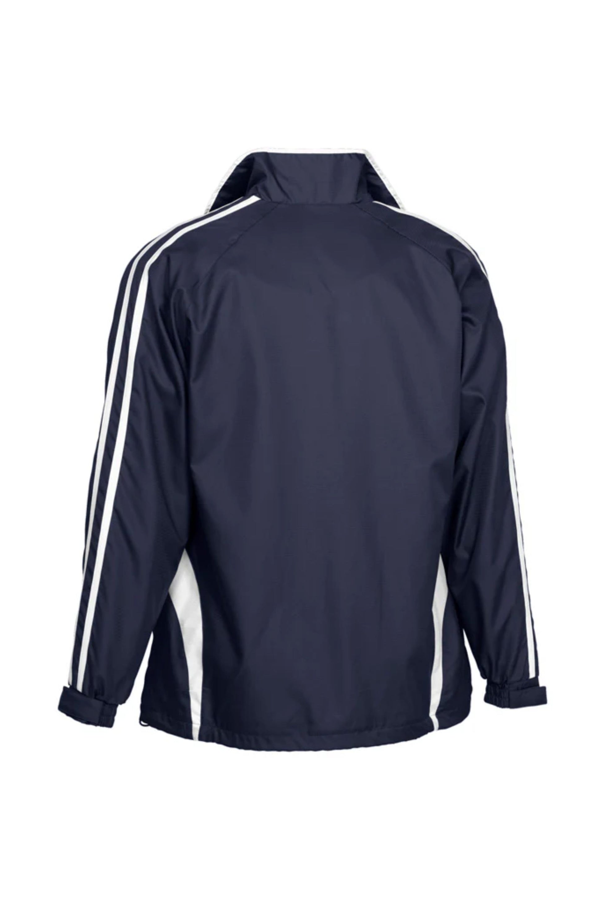 Unisex style lightweight jacket with full zip front and two side zippered pockets. Raglan sleeve with contrast colour flash splice and twin stripe detail. 100% Microfibre Ripstop outer with single jersey lined body for warmth.