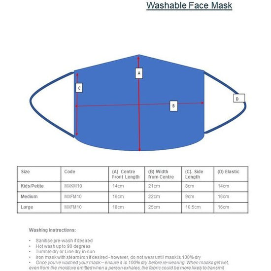 This durable facemask is designed for smaller faces and children. Constructed from 2 PLY fabric layers in our most comfortable poly-cotton fabric.