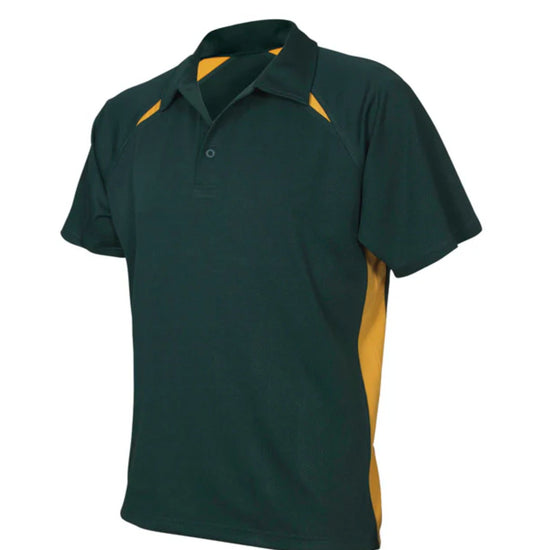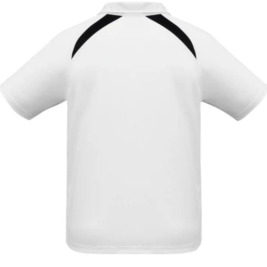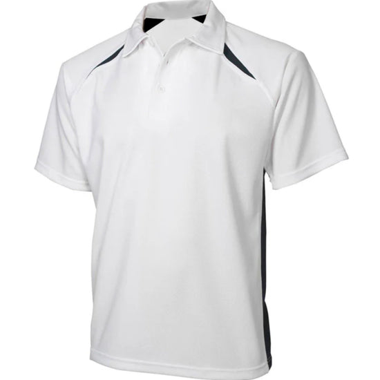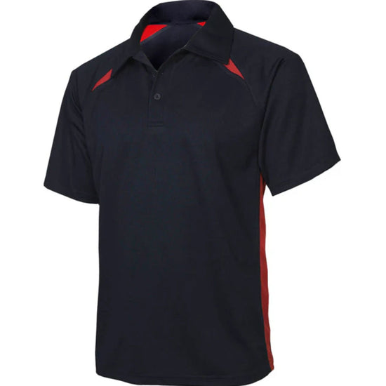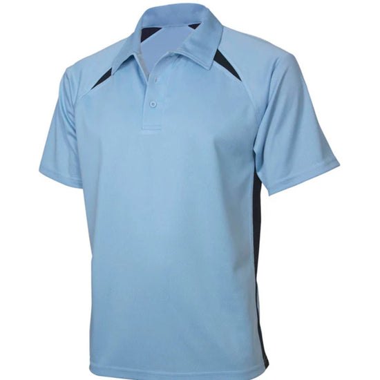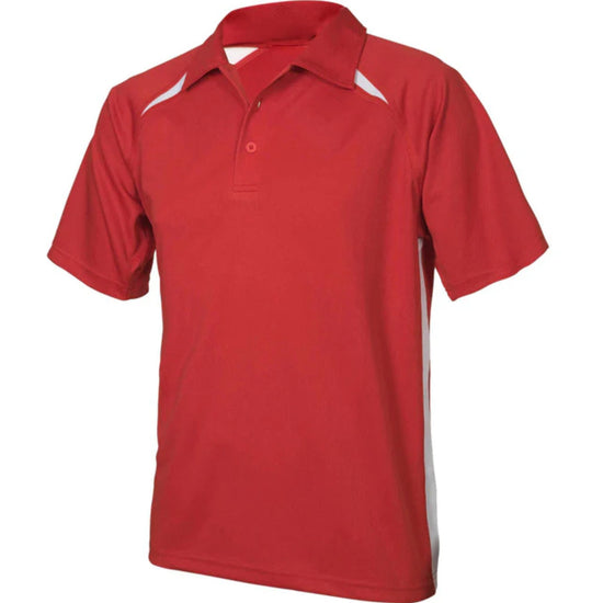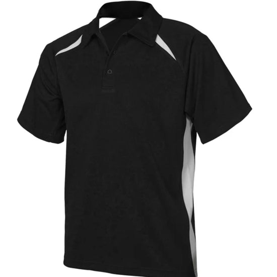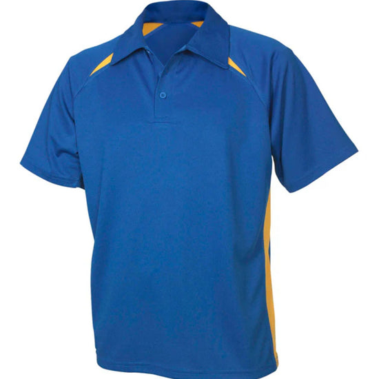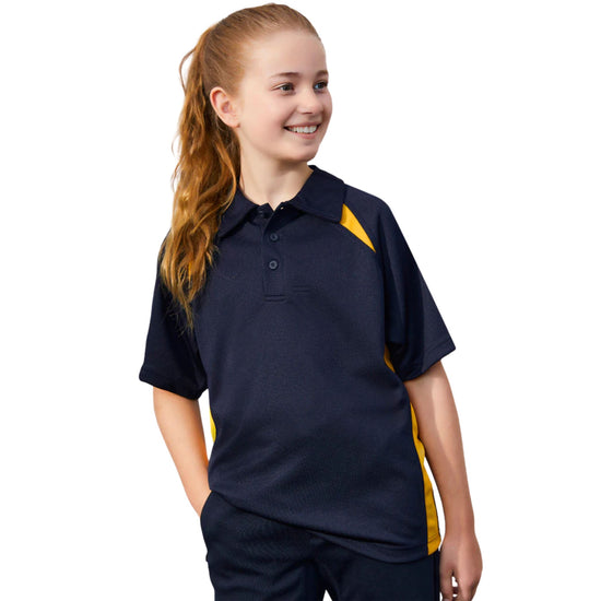 Kids polo shirt with button placket and contrast colour panels. 100% Breathable Polyester mesh knit fabric.