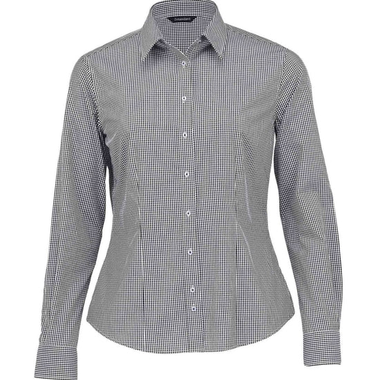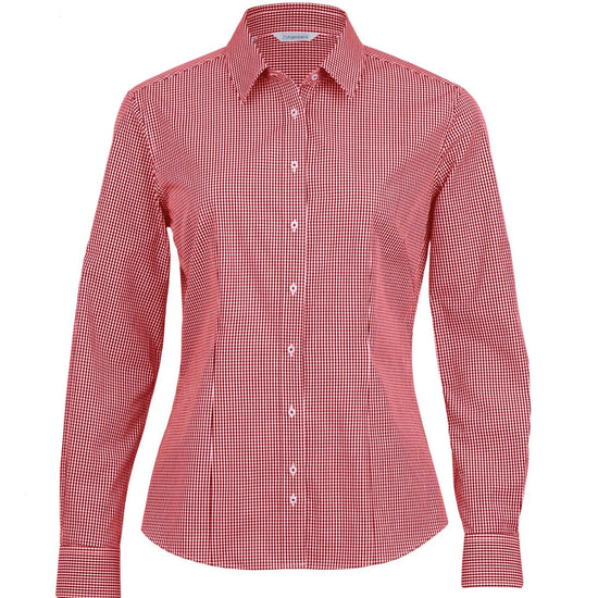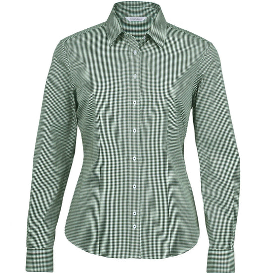 100% cotton yarn dyed gingham | Tapered fit | Fashion collar | Long sleeves | Shaped body detailing front and back | Contoured hemline | Contrast stitching on buttons