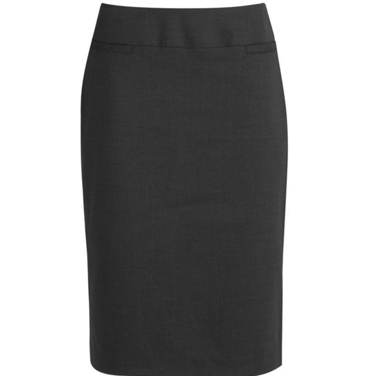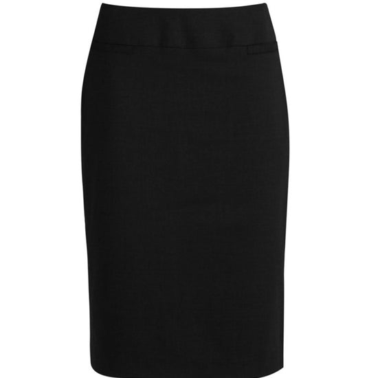 Ladies mid length skirt is a slightly lower waist fit and fully lined. Polyviscose fabric with mechanical stretch.