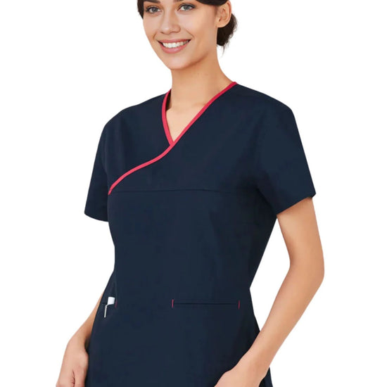Our Ladies Fit Scrub Top features a stylish crossover front trim, with two lower welt pockets and contrast stitching details. Made with Polycotton fabric providing you with a high performance soft touch garment, comfortable for your working day.