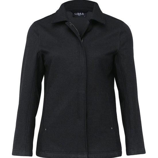 100% polyester herringbone softshell bonded with anti-pill microfleece. Tapered fit ladies jacket with two piece self fabric collar and concealed zippered plaquet with hidden domes and external storm flap. Welt zippered chest pocket/, side panel detail/, top stitch detailing/, welt side pockets with MP3 exit and rivet detail. Wind resistant/, breathable/, showerproof and a water repellant rating of 5000mm.