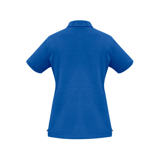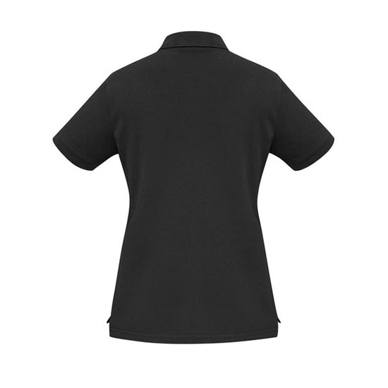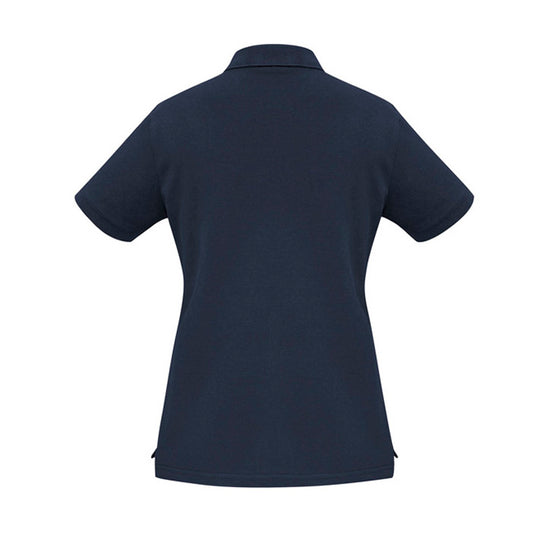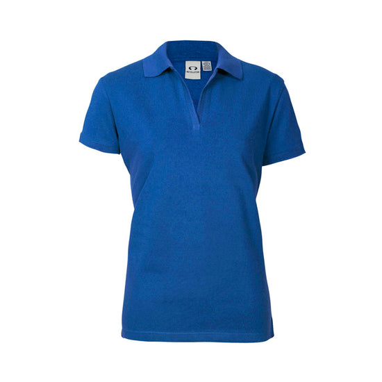 Ladies stretch cotton-rich pique knit polo. Self fabric collar with contrast piping knitted rib "Y" front placket. Piping detail across front and back yoke and side splits with contrast twill tape. Made form Cotton/ Elastane blend with 210GSM and an excellent UPF rating.
