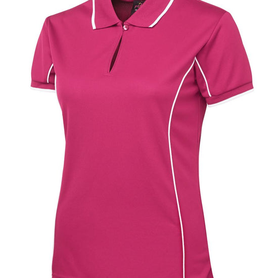 Ladies Poly Piping Polo SSL - Hot Pink/White