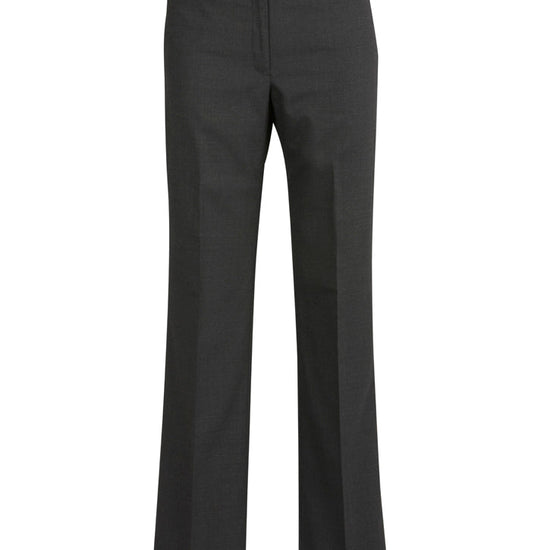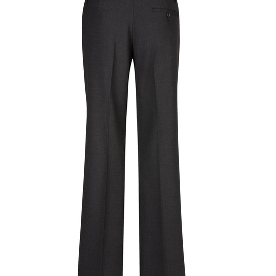 The women's relaxed fit pants are made in the comfort wool stretch fabric meaning they are durable and comfortable. They are a mid-rise everyday pant with a waistband designed to sit just below the navel. They are a straight leg pant that feature on front horizontal pocket and one pocket on the rear.