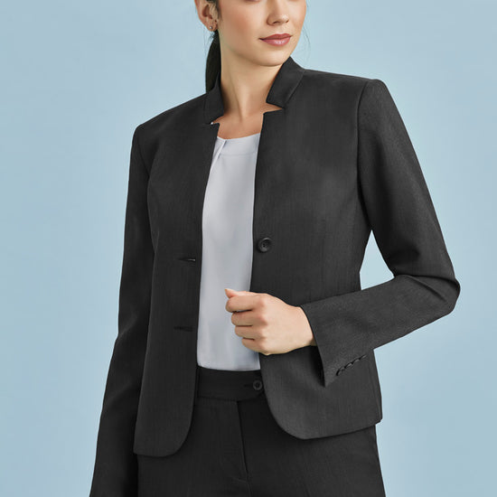 The women's reverse lapel jacket is an elegant on-trend styled jacket that will make you stand out from the crowd. Fully lined, with internal pocket and embroidery zip. Made from versatile and durable suiting fabric, a breathable fabric perfect for for warmer climates keeping you cool and dry. Mechanical stretch stretch for extra comfort and an anti-bacterial finish.