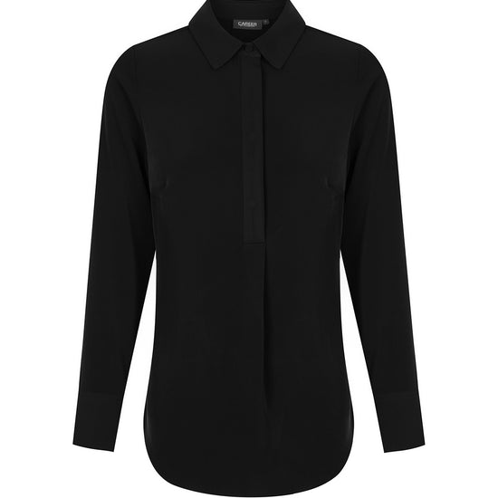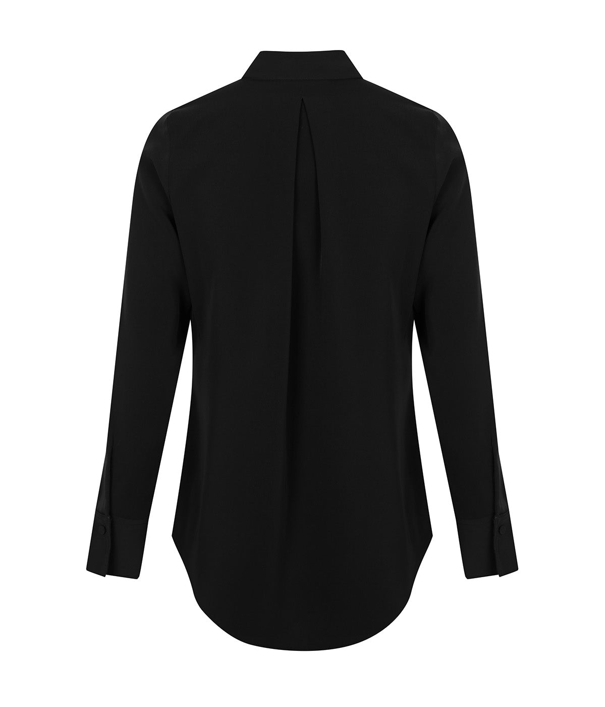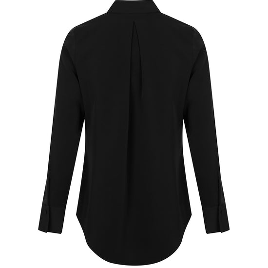The Quinn long sleeve shell top is fabricated in a luxe twill fabric that feels beautiful on the skin. It features mitered cuffs a concealed ½ placket and an inverted centre back pleat. This top is machine washable and therefore an easy care everyday top that can be worn cross seasons.