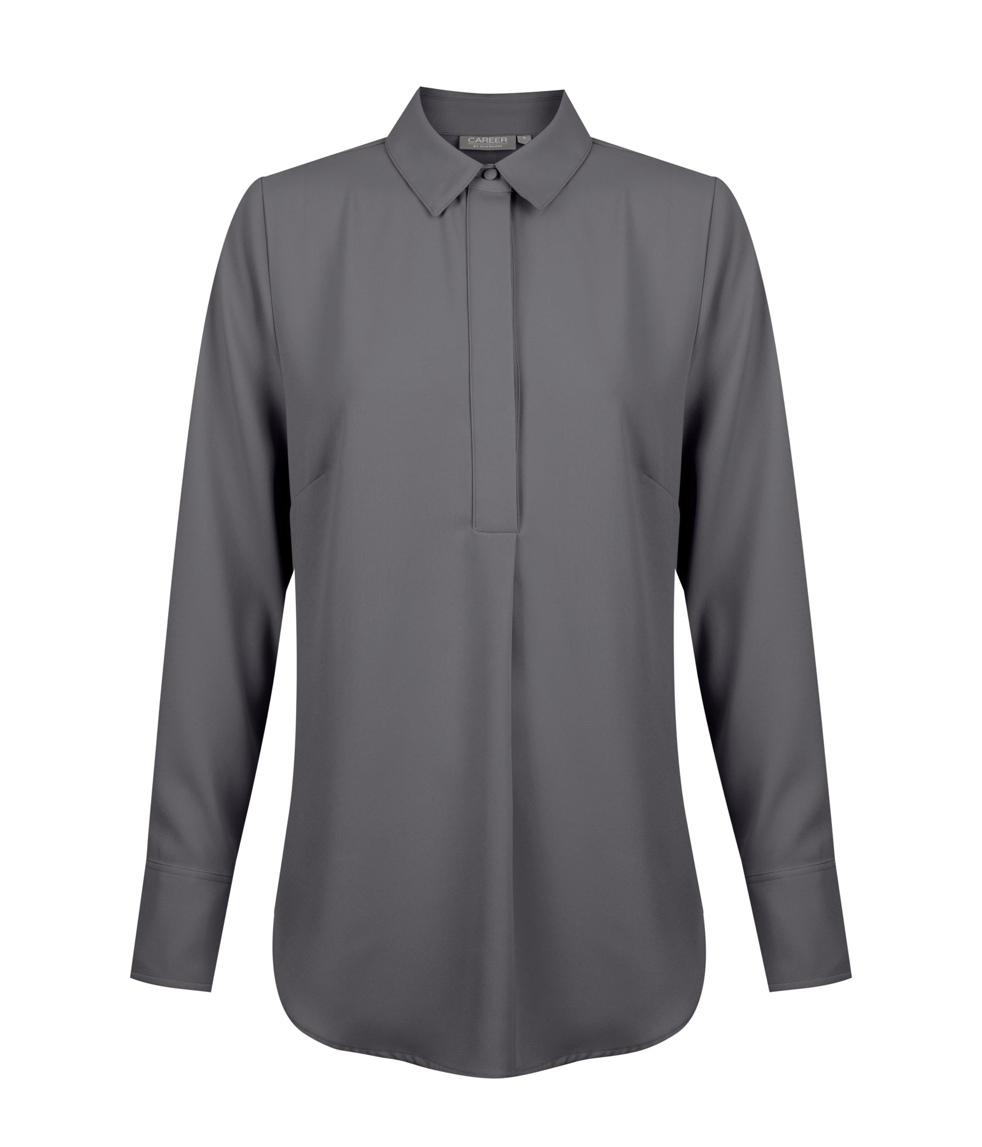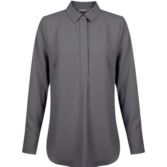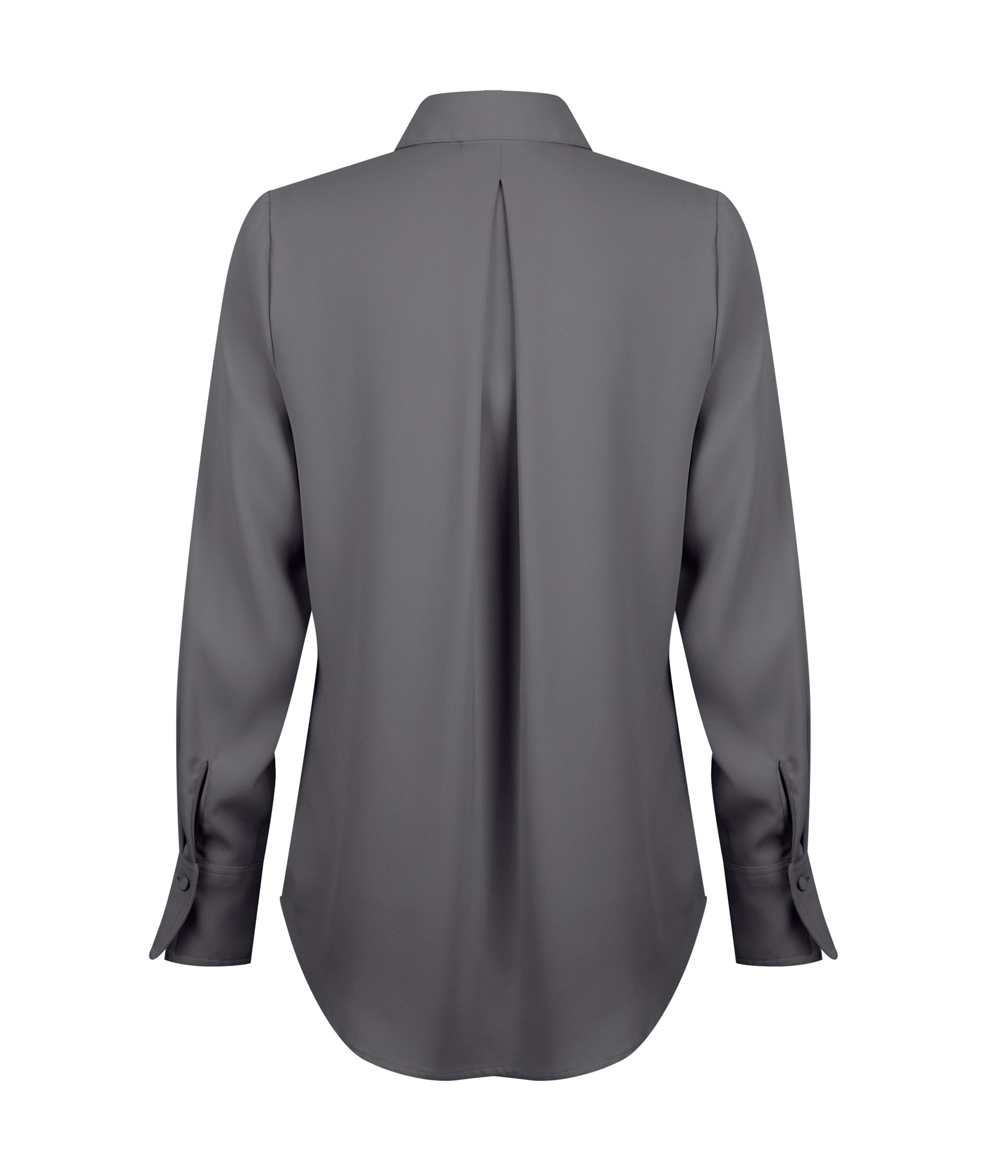 The Quinn long sleeve shell top is fabricated in a luxe twill fabric that feels beautiful on the skin. It features mitered cuffs a concealed ½ placket and an inverted centre back pleat. This top is machine washable and therefore an easy care everyday top that can be worn cross seasons.