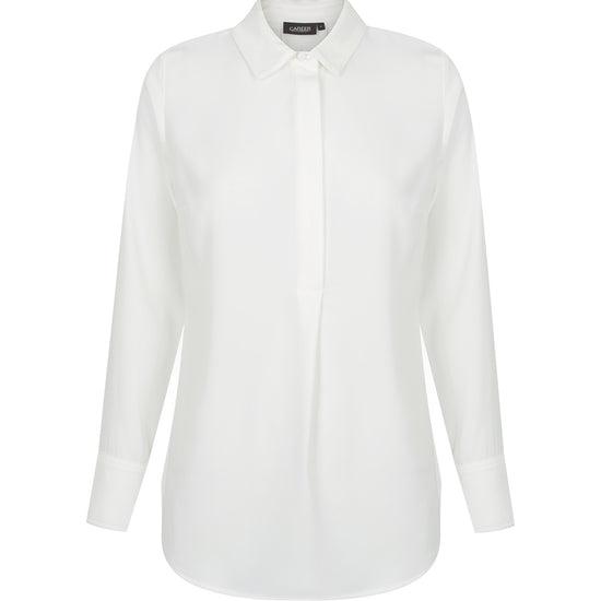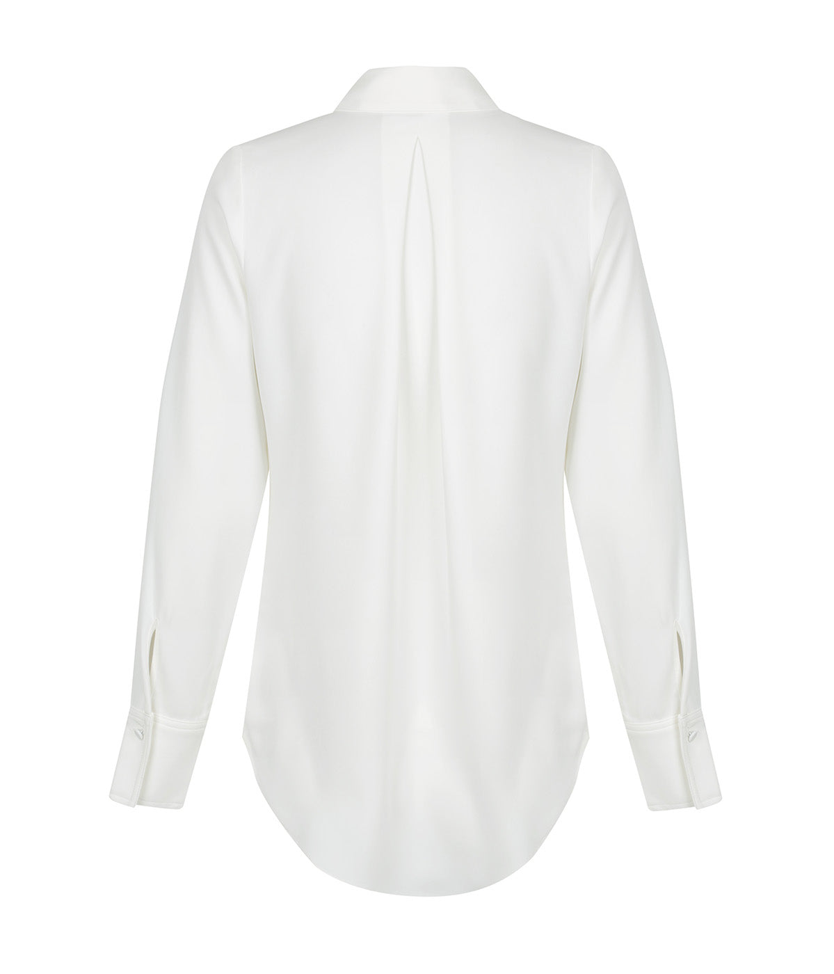 The Quinn long sleeve shell top is fabricated in a luxe twill fabric that feels beautiful on the skin. It features mitered cuffs a concealed ½ placket and an inverted centre back pleat. This top is machine washable and therefore an easy care everyday top that can be worn cross seasons.