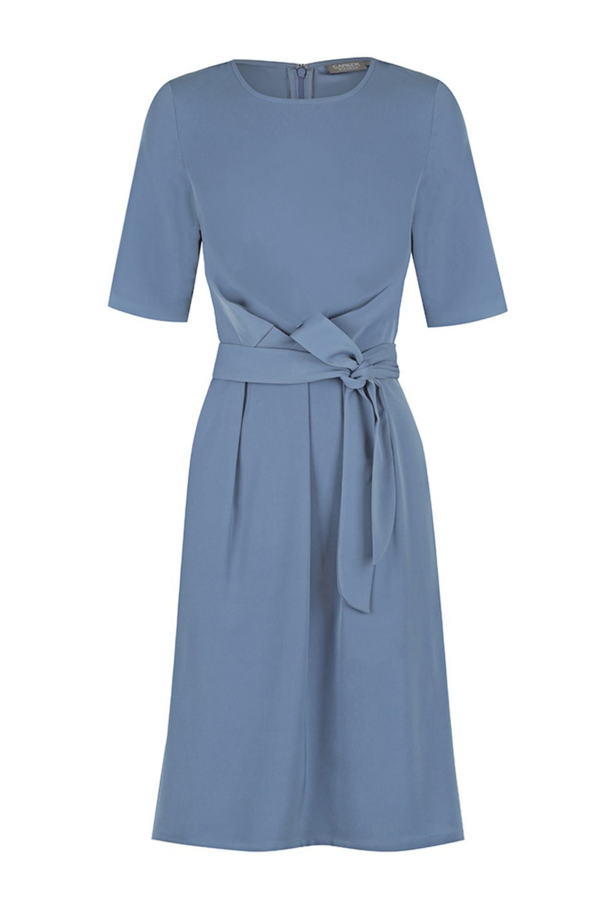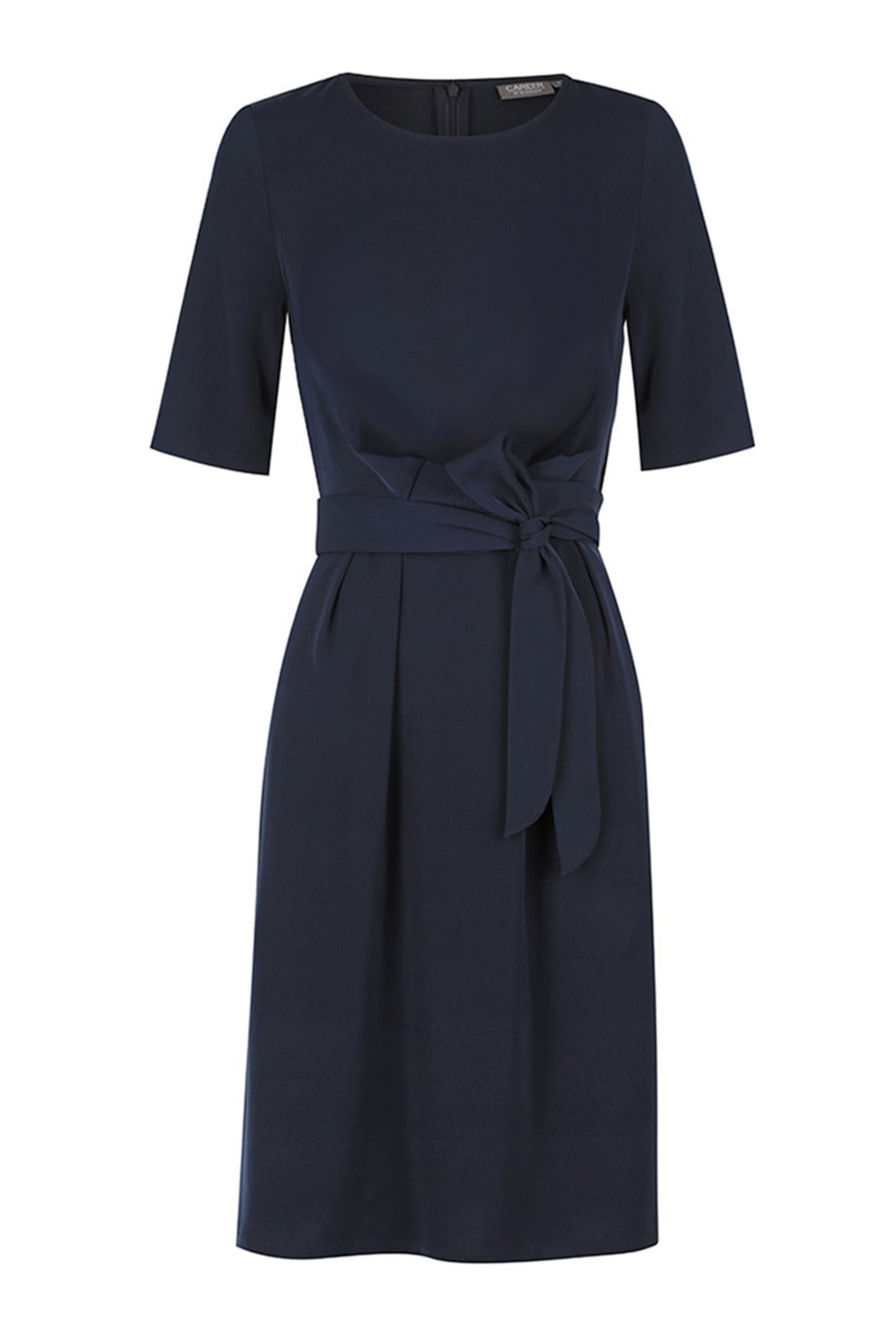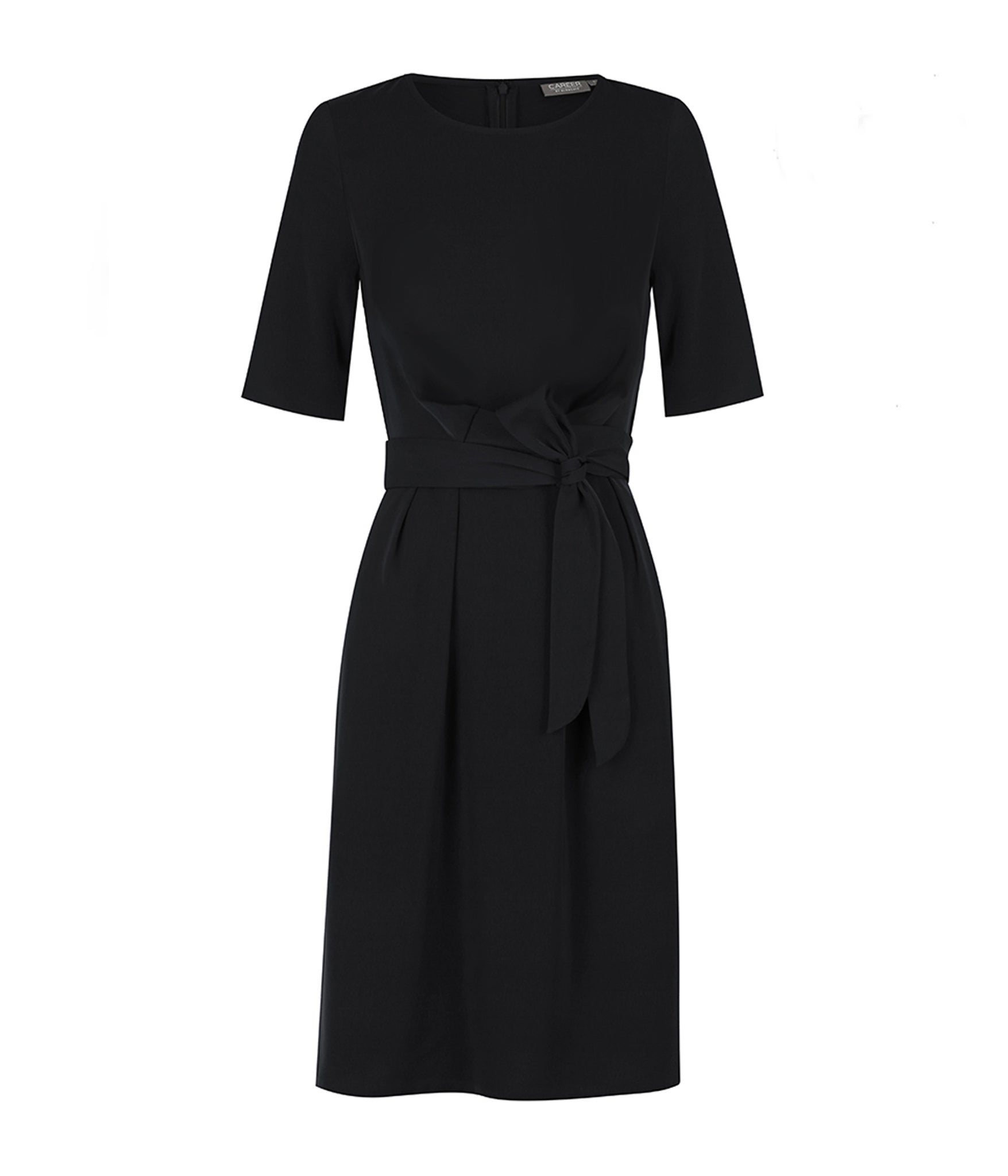 This flattering tie waist dress allows you to create your own style in the workplace, tie at the front or back, in a bow or loop. Elbow length sleeves makes this perfect for any season and side pockets means you can walk around the office in comfort and style. Its luxe twill fabric also allows you to machine wash making this dress an easy care everyday item.