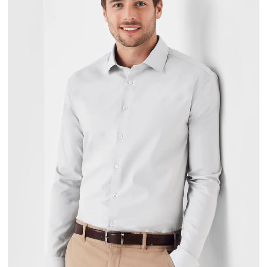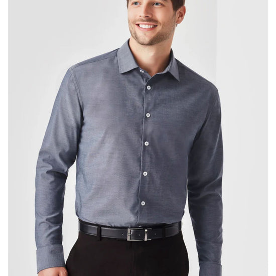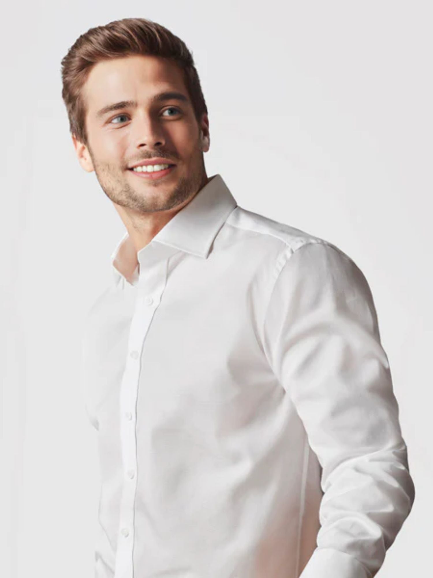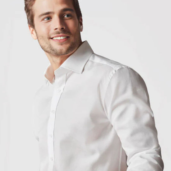 smart casual shirting in modern styles available in slim and classic cuts, suitable for all work environments. Cotton-rich shirting will keep you cool and dry, with mechanical stretch for comfort. Subtle modern detailing with white buttons and selfcolour stitching.